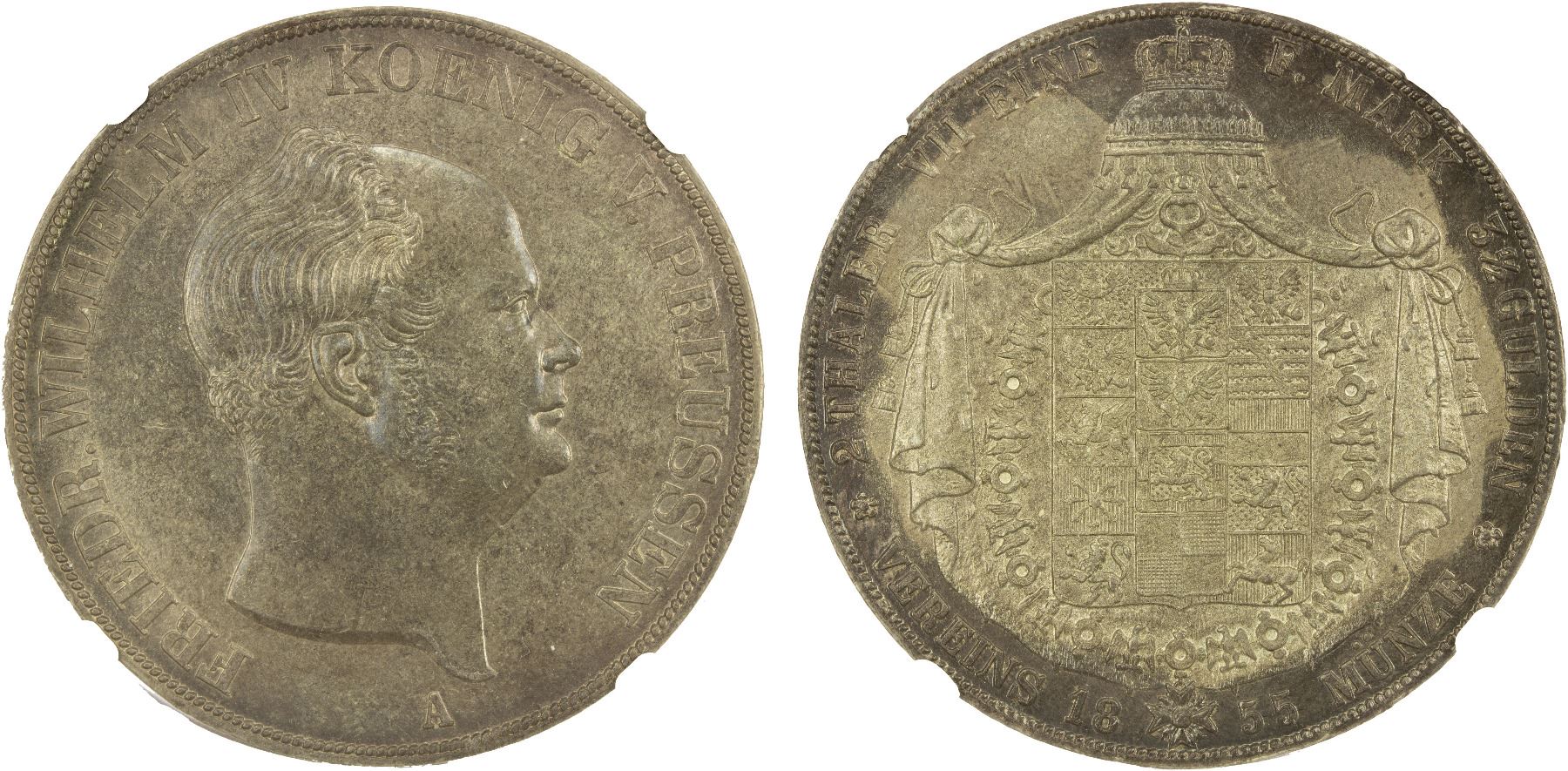 PRUSSIA: Friedrich Wilhelm IV, 1840-1861, AR 2 thaler / 3½ gulden, 1855, NGC MS62