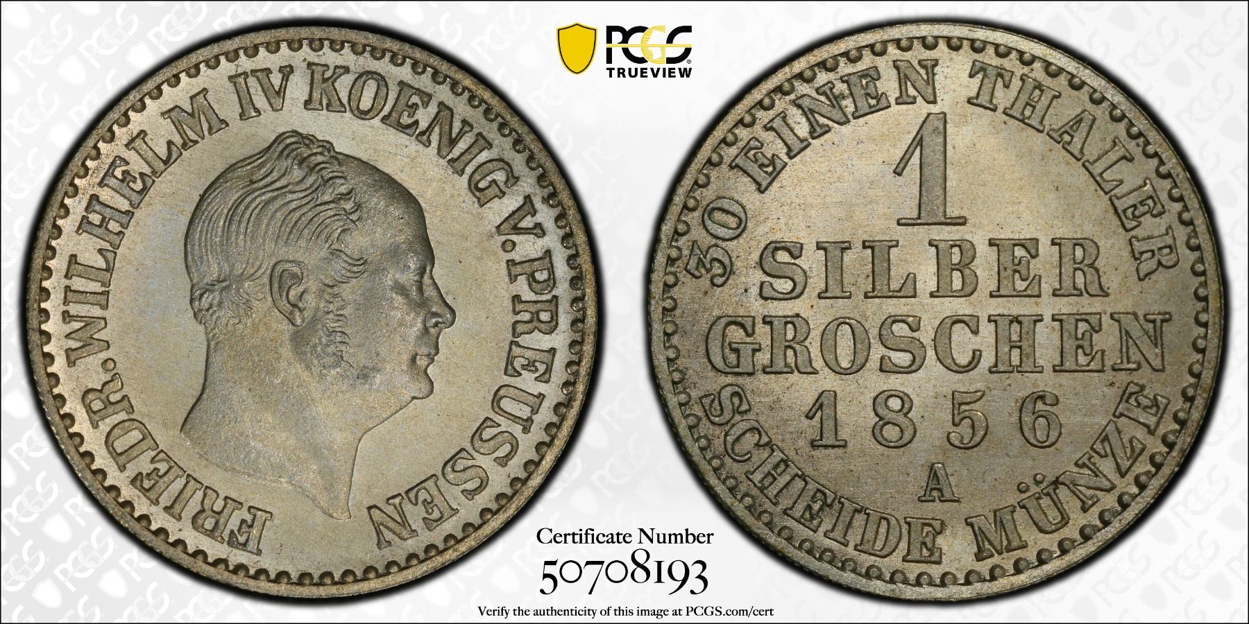 PRUSSIA: Friedrich Wilhelm IV, 1840-1861, AR groschen, 1856-A, PCGS MS66