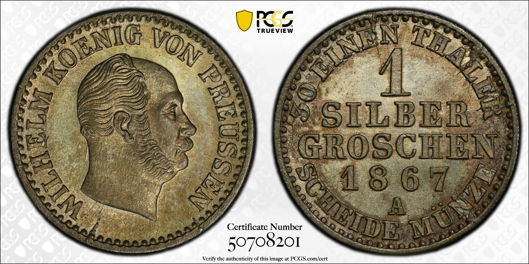 PRUSSIA: Wilhelm I, 1861-1888, AR groschen, 1867-A, PCGS MS64