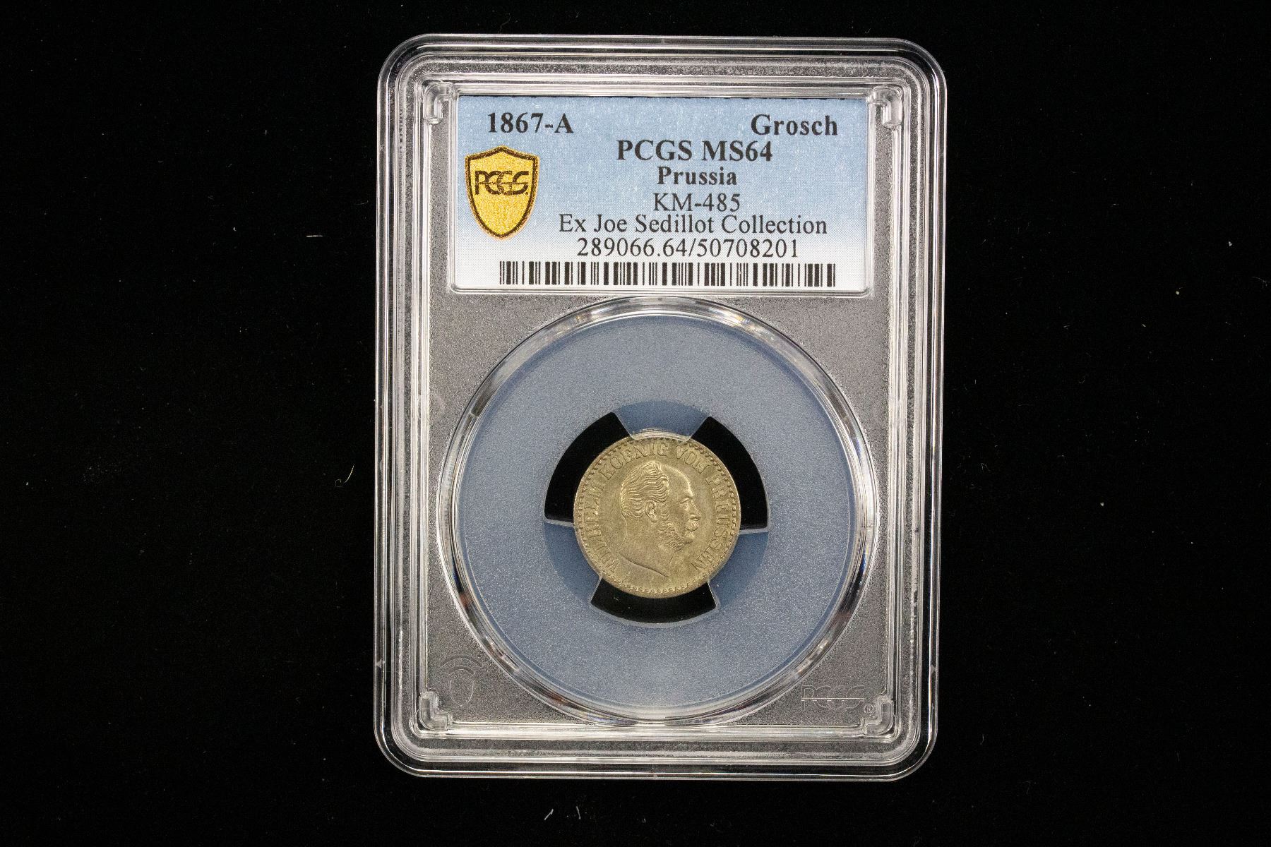 PRUSSIA: Wilhelm I, 1861-1888, AR groschen, 1867-A, KM-485, Cr-166, a wonderful mint state example! PCGS graded MS64, ex Joe Sedillot Collection.