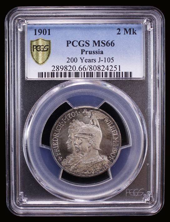 PRUSSIA: Wilhelm II, 1888-1918, AR 2 mark, 1901, PCGS MS66