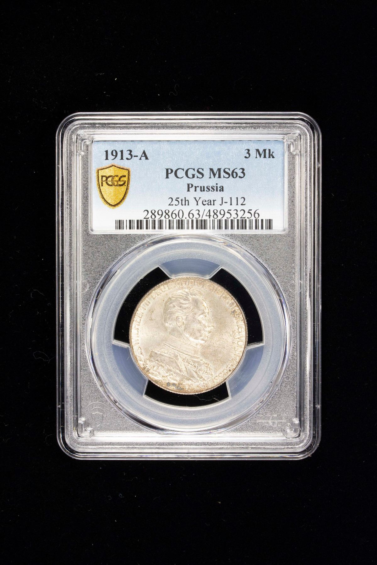 PRUSSIA: Wilielm II, 1888-1918, AR 2 mark, 1913-A, KM-533, J-111, 25th Anniversary of the Reign, PCGS graded MS63.
