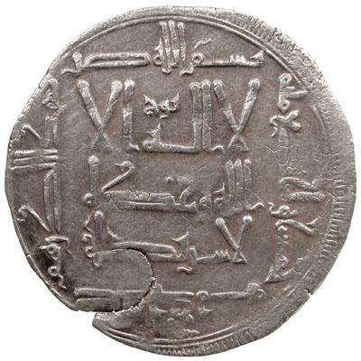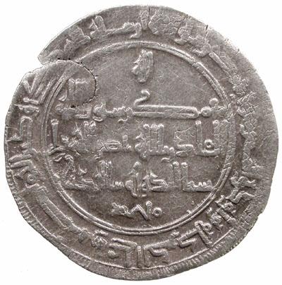 QARAKHANID: Muhammad b. 'Ali, 1003-1024, AR dirham (2.08g), Khujanda, AH405, A-3307, Koch-404, with his titles Sana' al-Dawla and Yinal-tegin, also citing an unidentied nuh atop the obverse field, one flan crack, bold Very Fine, RR.