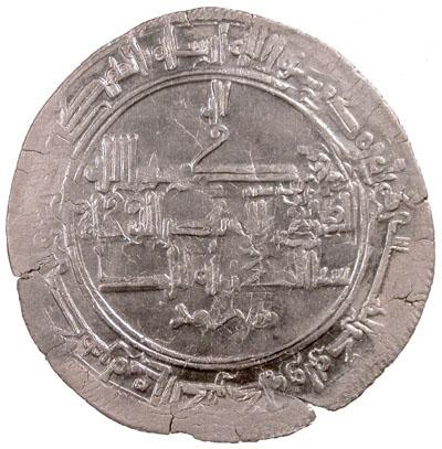 QARAKHANID: Muhammad b. 'Ali, 1003-1024, AR dirham (2.46g), Ilaq, AH406, A-3307, Kochnev-418, ornate calligraphy, some light adhestion at the rim, Extremely Fine, RRR. Although a common mint for copper coins, Ilaq is very rare for silver.