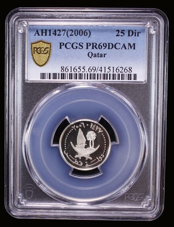 QATAR: Hamad b. Khalifa al-Thani, 1995-2013, AR 25 dirhams, 2006/AH1427, PCGS PF69 Deep Cameo