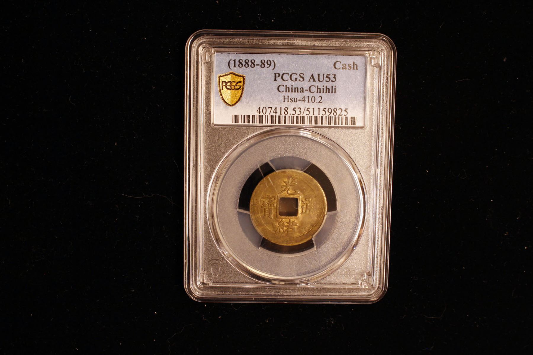QING: Guang Xu, 1875-1908, AE cash (2.72g), Tianjin mint, Zhili Province, H-22.1462, machine struck 1896-99 on the 7 to 8 fen standard, small characters variety, PCGS graded AU53. When mint officials figured that each machine-struck cash cost more than 2 cash to produce, casting was quickly resumed in conjunction with struck coinage.