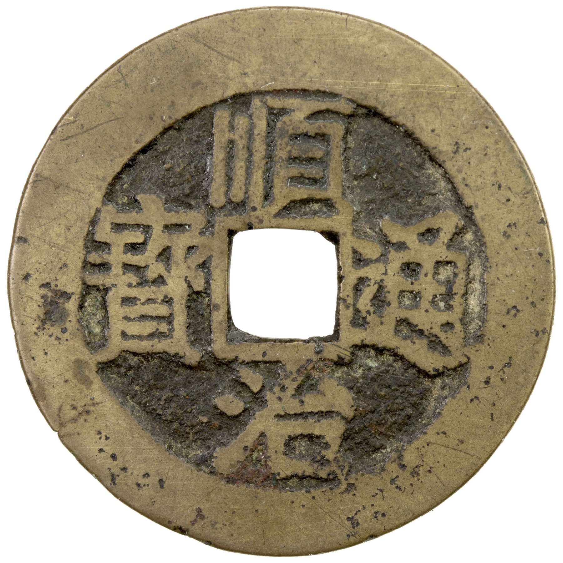 QING: Shun Zhi, 1644-1661, AE cash (3.07g), Board of Revenue mint, H-22.11, cast 1644-45, one dot tong type, plain reverse, VF. The Shunzhi Emperor created the Ministry of Revenue and the Ministry of Public Works in Beijing to oversee the casting of bronze cash coins. One dot Tong types can be attributed to the Board of Revenue mint and types with two dot Tong to the Board of Works mint.