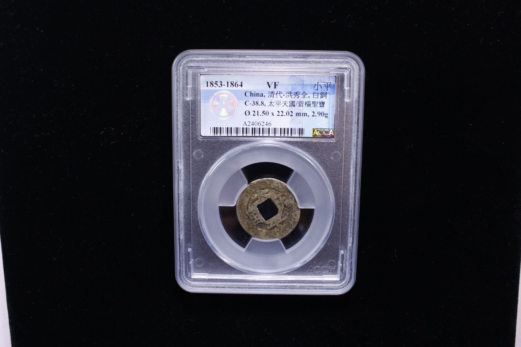 QING: Tai Ping, Rebels, 1850-1864, AE cash (2.9g), H-23.18, tai ping tian guo with oblong guo // sheng bao (sacred currency), cast 1861-64, ACCA graded VF.