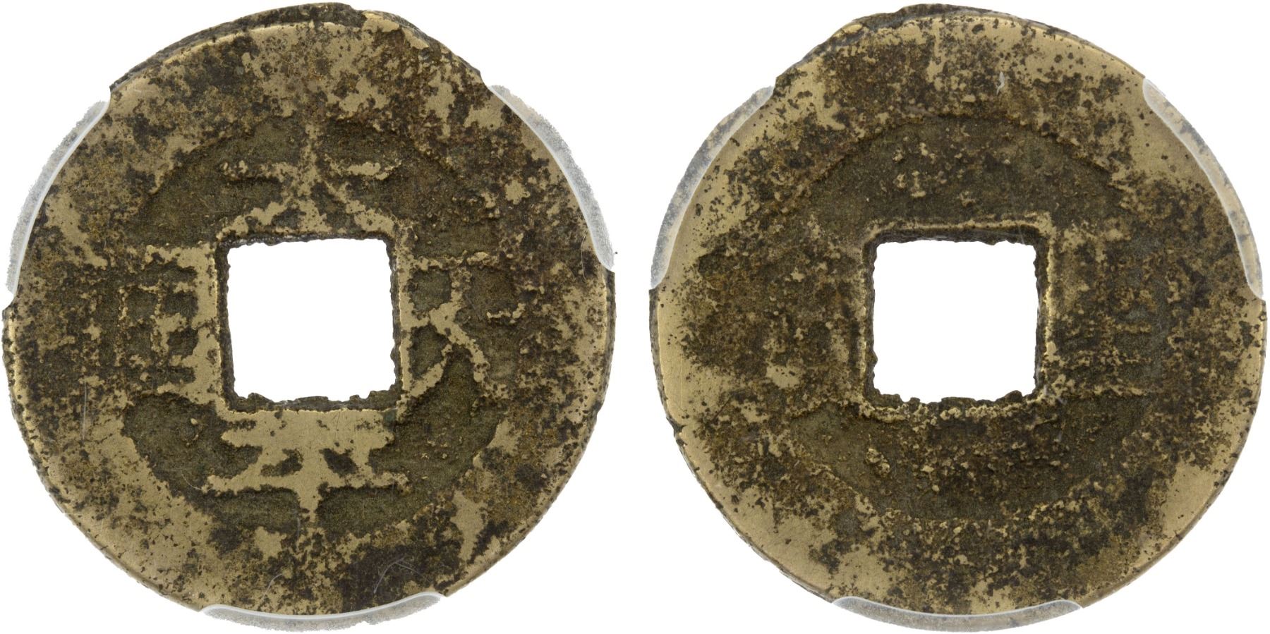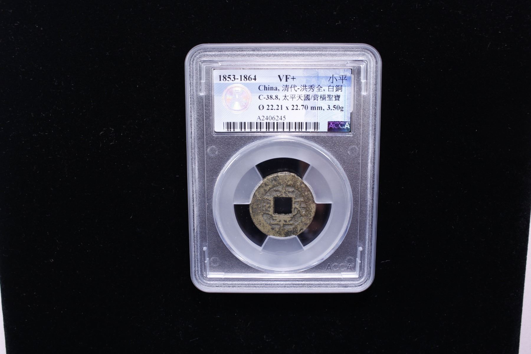 QING: Tai Ping, Rebels, 1850-1864, AE cash (3.5g), H-23.18, tai ping tian guo with oblong guo // sheng bao (sacred currency), cast 1861-64, ACCA graded VF+.