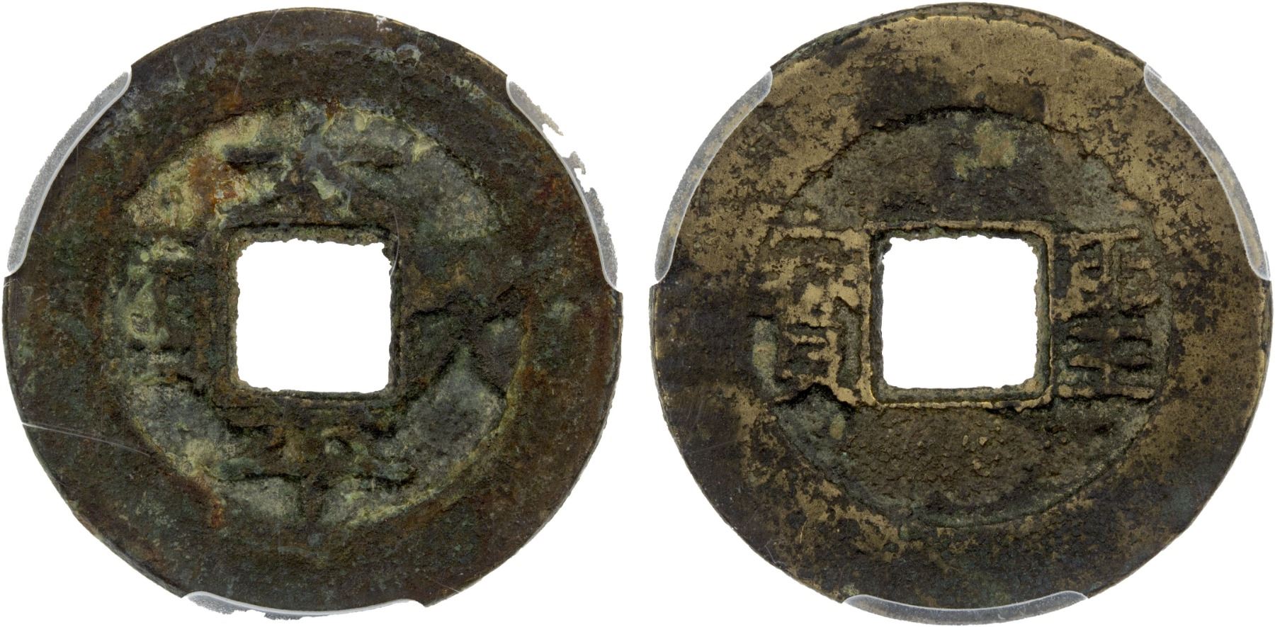 QING: Tai Ping, Rebels, 1850-1864, AE cash (3.7g), H-23.18, tai ping tian guo with oblong guo // sheng bao (sacred currency), cast 1861-64, ACCA graded XF.
