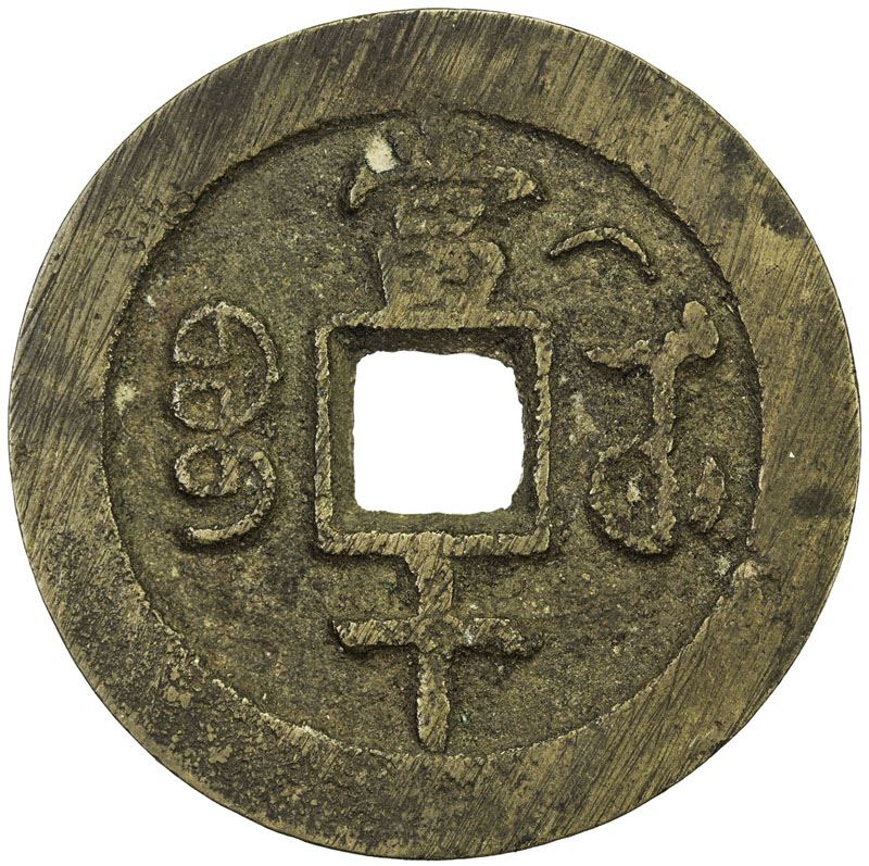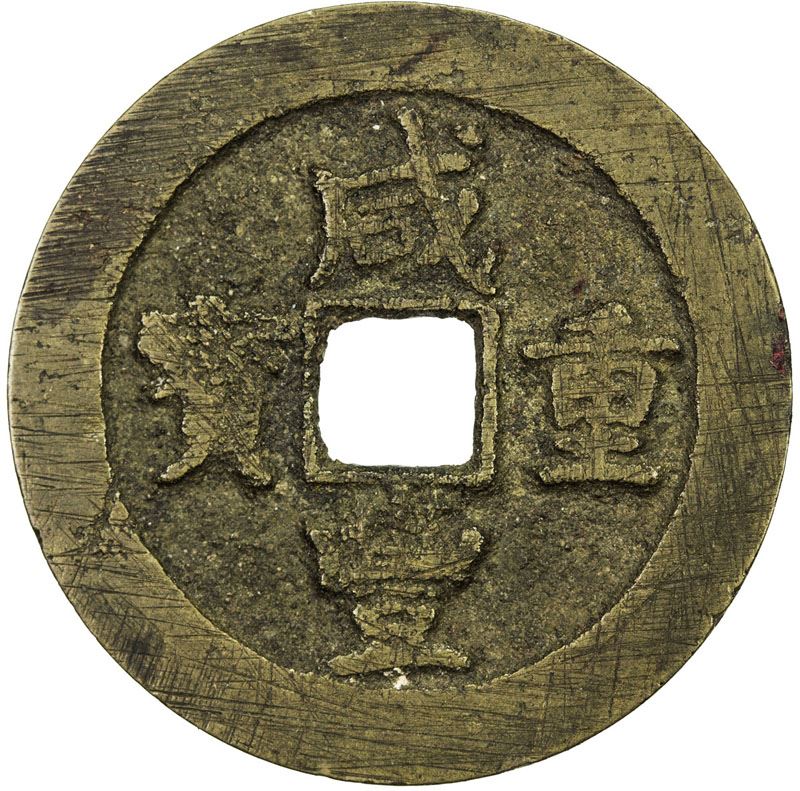 QING: Xian Feng, 1851-1861, AE 10 cash, Wuchang mint, Hubei Province, H-22.858, with inverted crescent above mint name, cast 1854-56, VF, S, ex Jiùjinshan Collection.