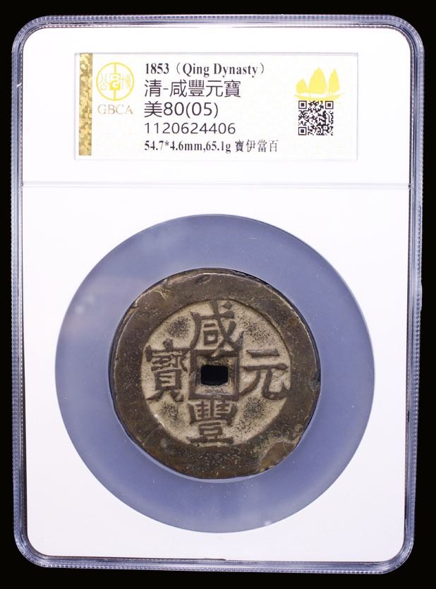 QING: Xian Feng, 1851-1861, AE 100 cash (65.1g), Ili Mint, Xinjiang Province, H-22.1091, graded 80(05) by GBCA Grading Company, natural flan crack, VF, ex Dr. Dirk Löer Collection, ex Stephen Album Auction 23, Lot 773.