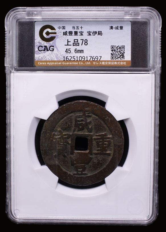 QING: Xian Feng, 1851-1861, AE 100 cash, Ili Mint, Xinjiang Province, H-22.1092, 46mm, small size and small characters, cast 1854-55, graded 78 by CAG Grading Company, Fine.