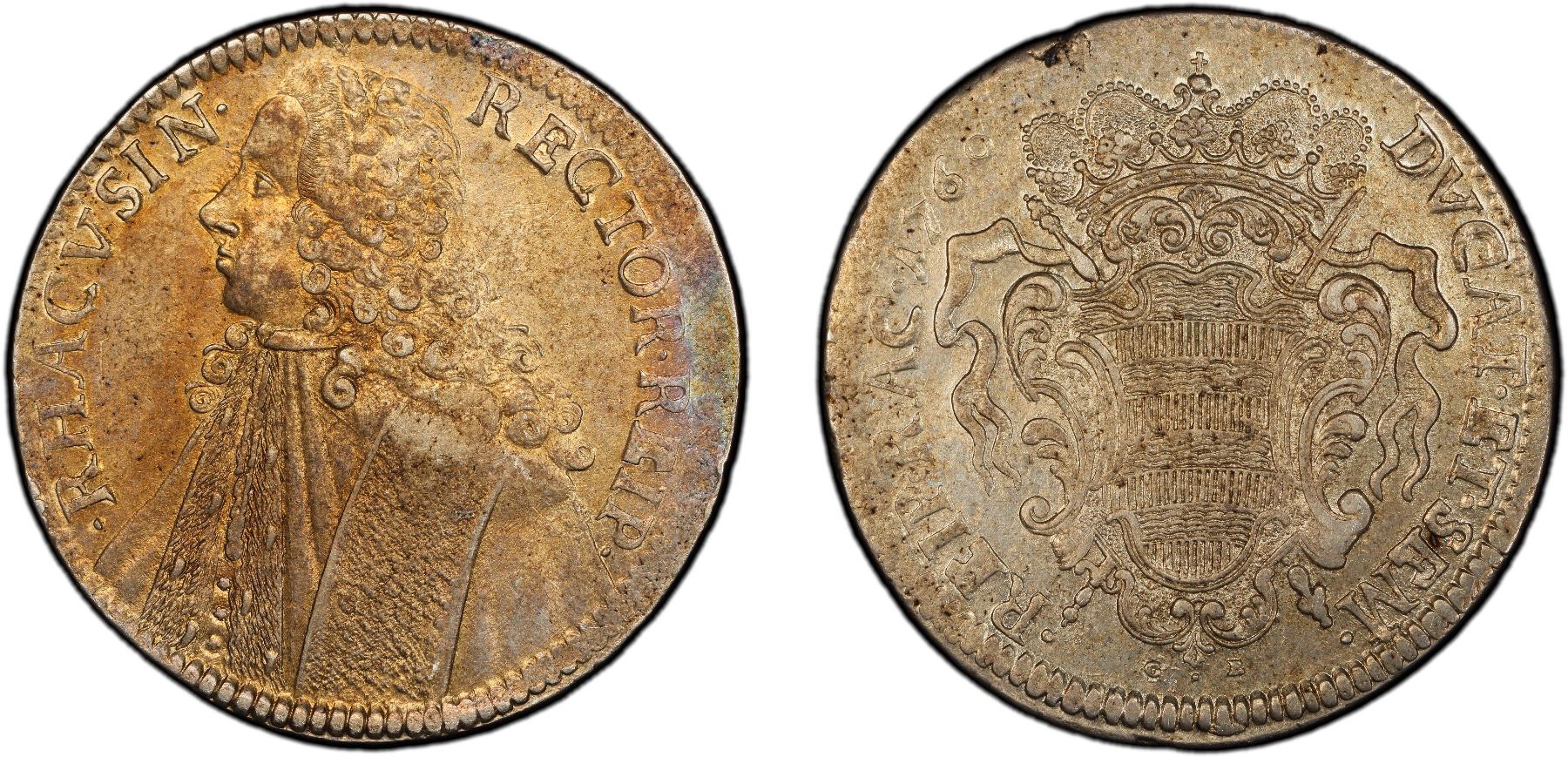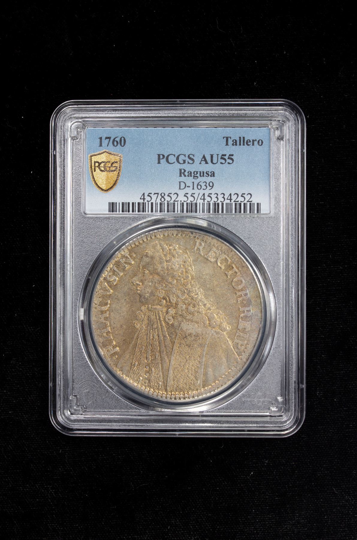 RAGUSA: Republic, AR tallero, 1760, KM-18, Dav-1639, much original mint luster, PCGS graded AU55.