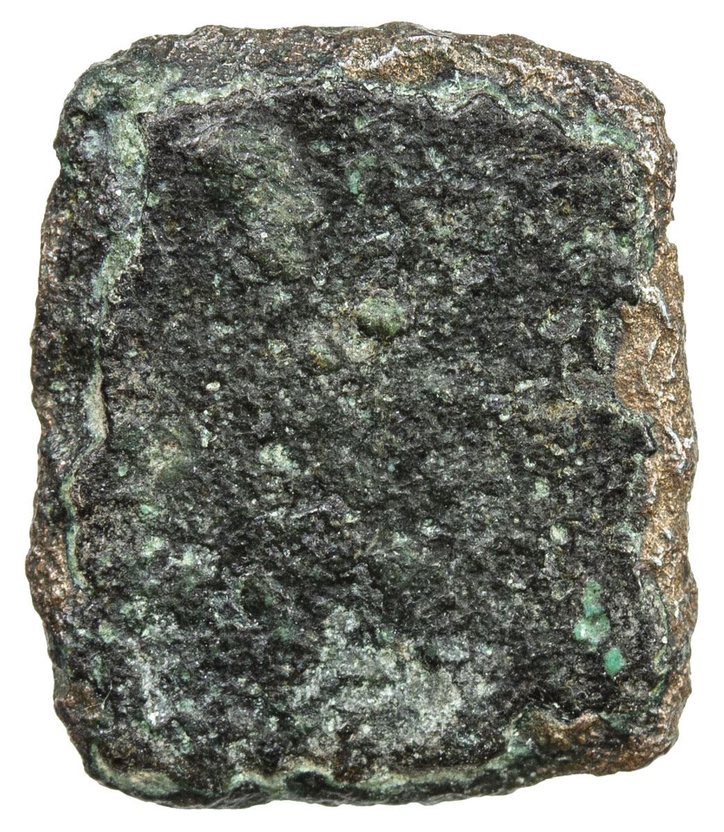RAJGIR: Anonymous, 2nd century BC, AE square (0.97g), Pieper-1046 (this piece), diagonally arranged cross within square frame, decorative border, uniface, bold VF, RR. Rajgir was capital of ancient Magadha. Its early local coins are rare and only a few have been found in the ancient ruins of the town.