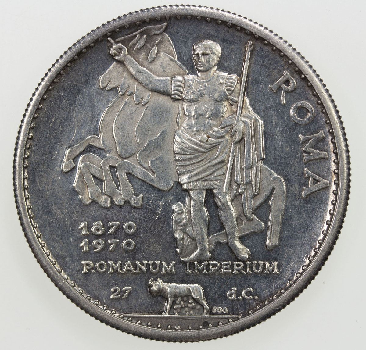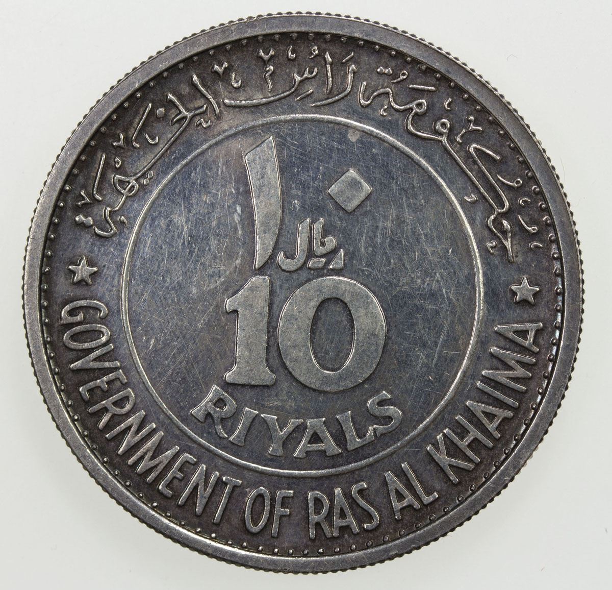 RAS AL KHAIMA: Saqr b. Muhammad al-Qasimi, 1948-2010, AR 10 riyals, 1970, KM-18, Caesar Augustus & Centennial of Rome, mintage of only 2,000 pieces, hairlines, Proof, S.
