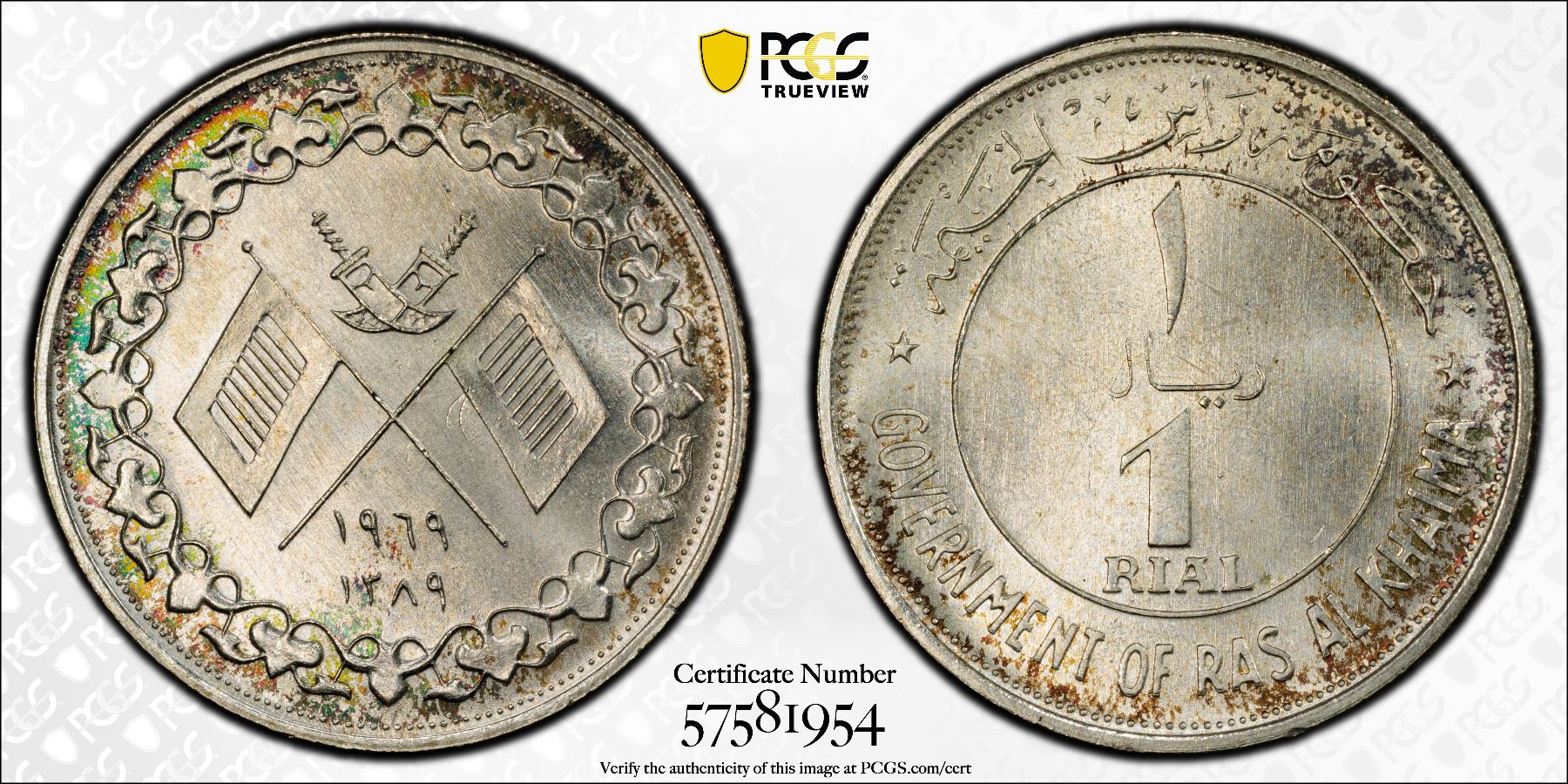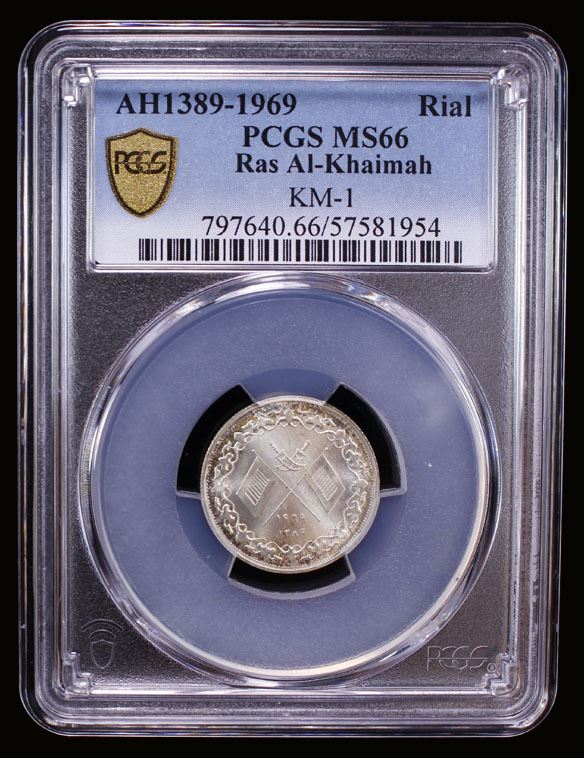 RAS AL KHAIMA: Saqr bin Mohammed al-Qasimi, 1948-2010, AR riyal, 1969/AH1389, KM-1, PCGS graded MS66.