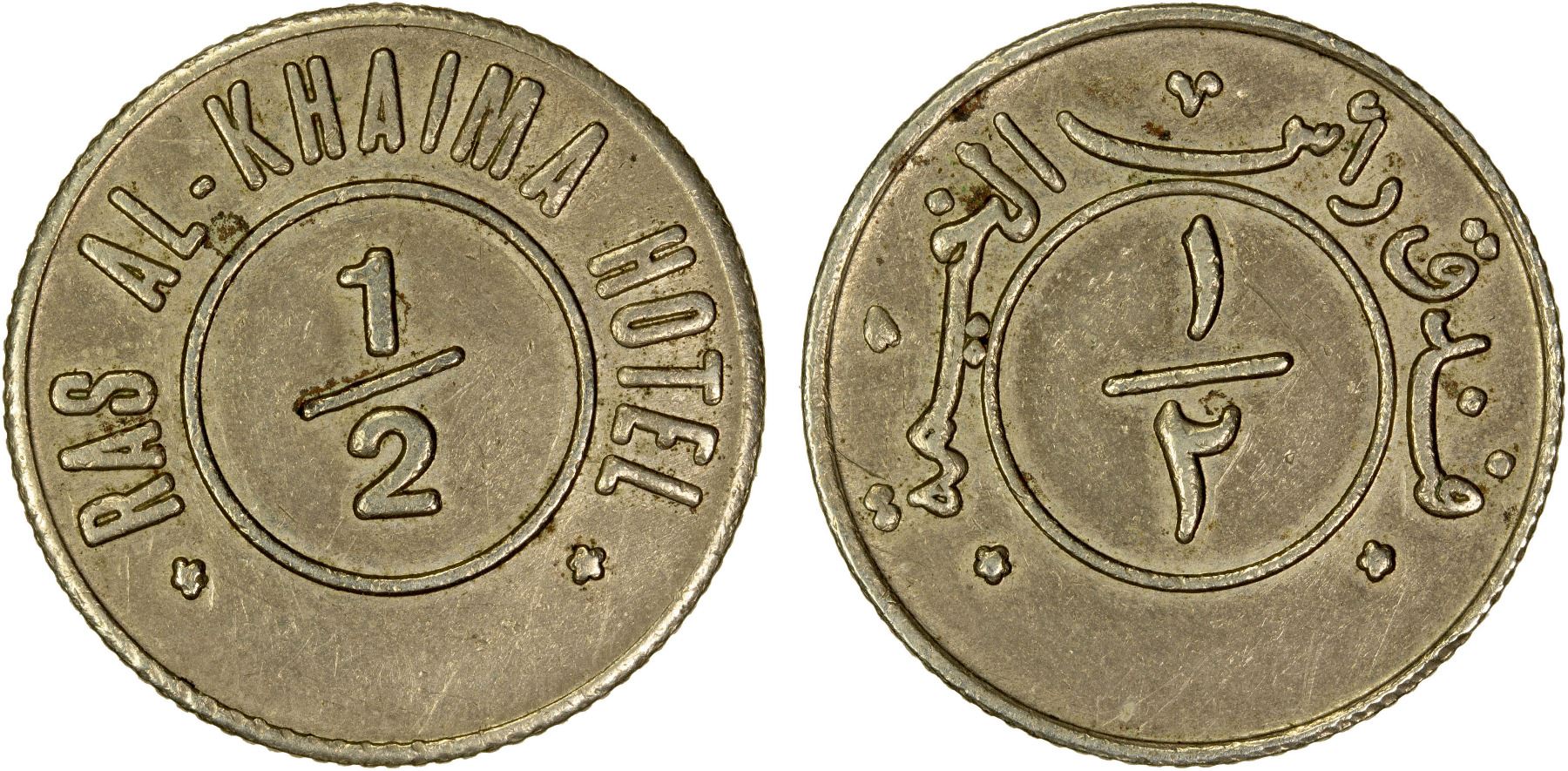 RAS AL KHAIMA: Sadr b. Muhammad, 1948-2010, ½ dirham token, ND (circa 1960s), for the Ras al-Khaima Hotel, white metal, EF, R.