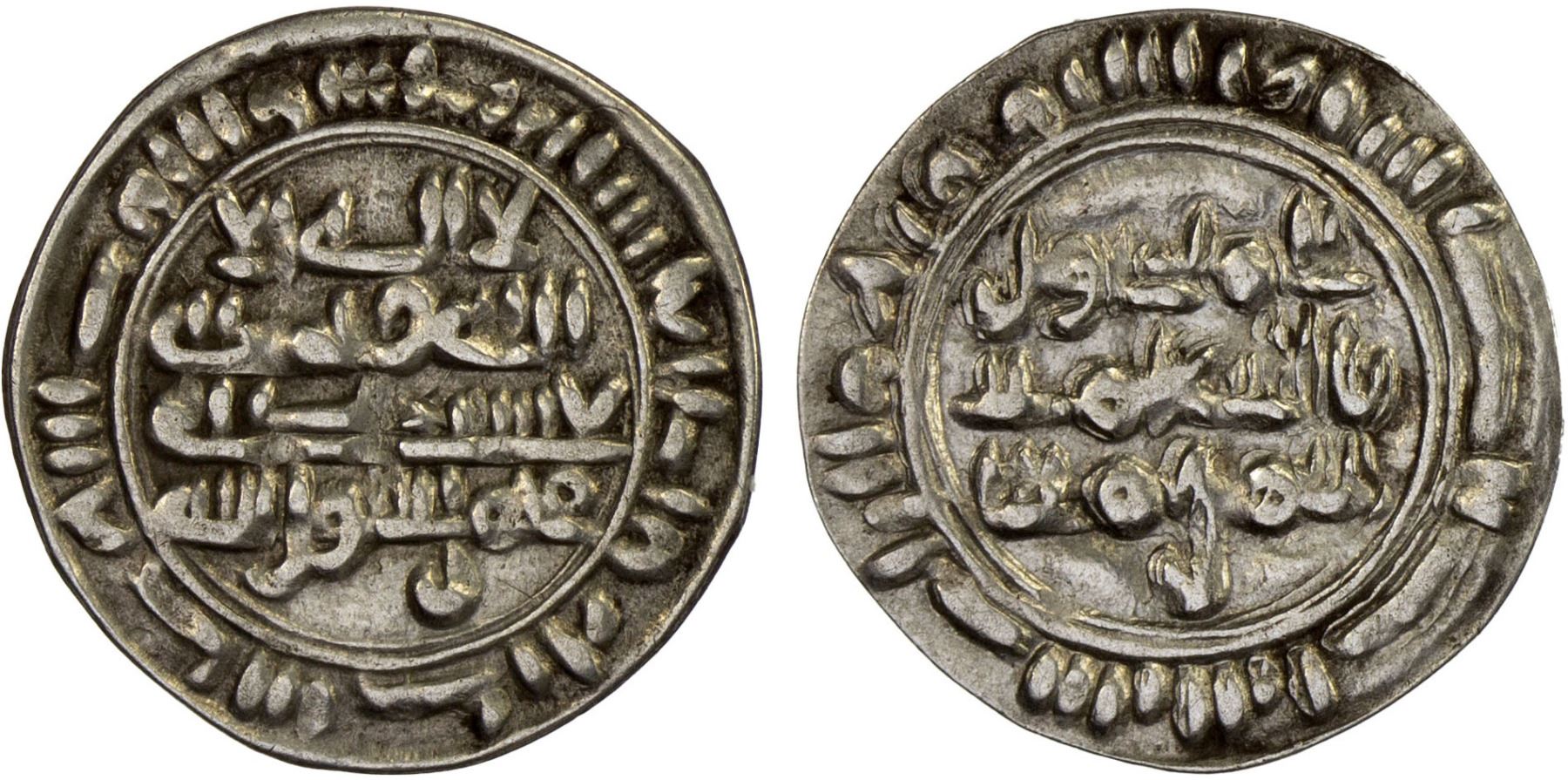 RASSID: al-Mansur al-Qasim al-Ayyani, 999-1003, AR sudaysi (0.36g), San'a, ND, A-1069N, reverse legend al-mansur / billah amir / al-mu'minin; bold strike, XF, RRR.