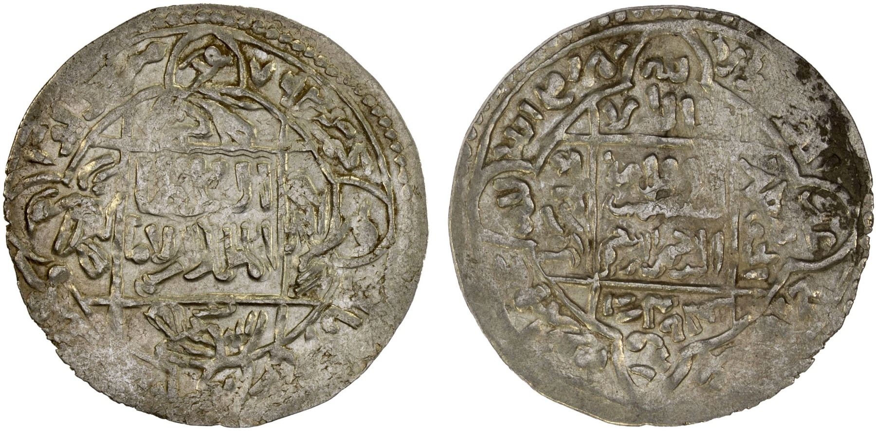 RASULID: al-Ashraf Isma'il I, 1376-1400, AR dirham (1.84g), al-Mahjam, AH792, A-1110.6, type F, complex design with 4 hawks around the central square, date in numerals; very rare type for this mint, choice XF.
