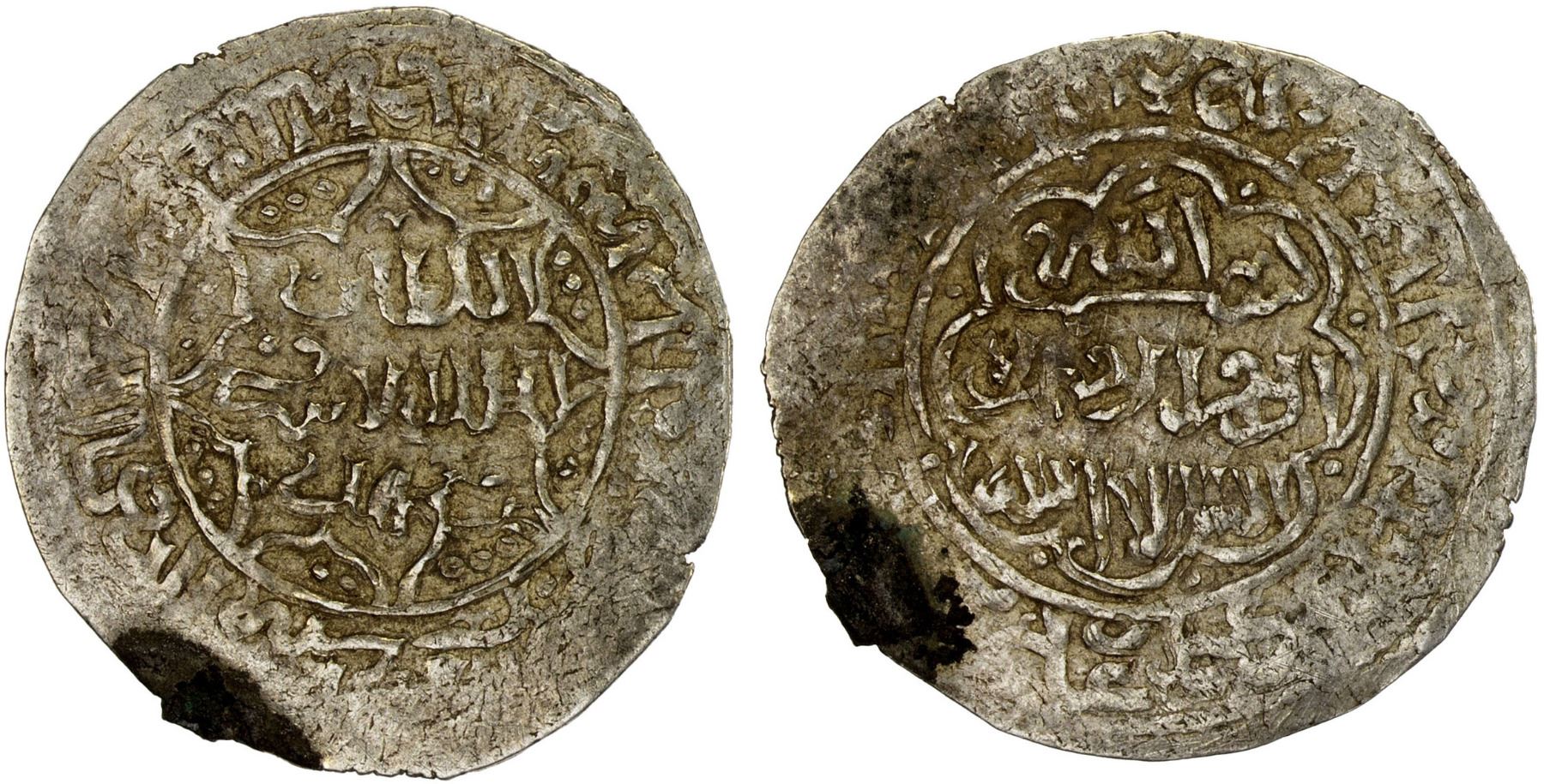 RASULID: al-Zahir Yahya, 1428-1439, AR dirham (1.80g), Zabid, AH83x, A-B1113, plant rising from a pot, with ruler's name, mint & date around // scalloped circle within an inner circle; religious legends, relatively little weakness (mostly on the reverse); unpublished type, VF, RRR.