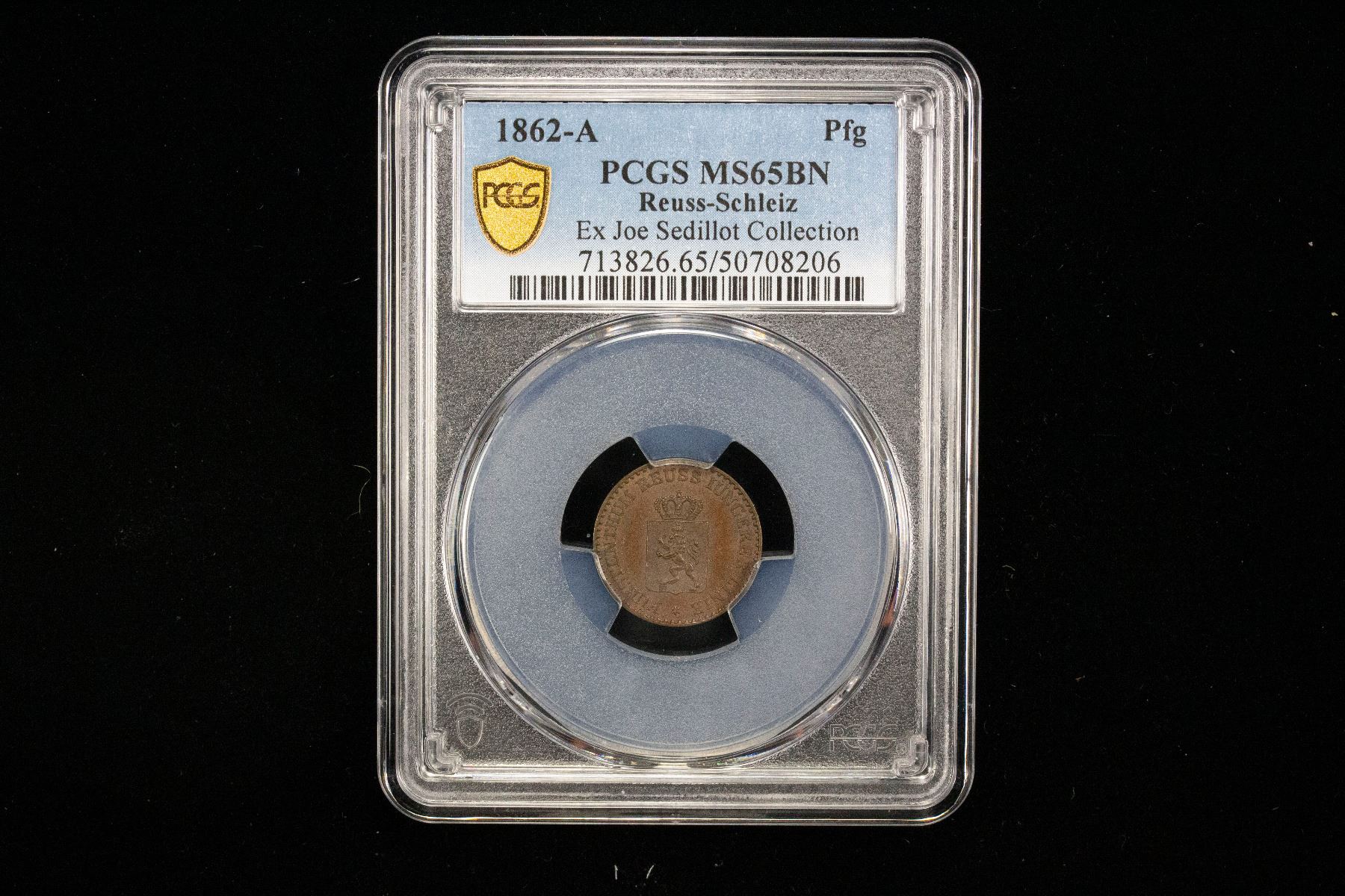 REUSS-SCHLEIZ: Heinrich LXVII, 1854-1867, AE pfennig, 1862-A, KM-50, Cr-20, a superb mint state example! PCGS graded MS65 BN, ex Joe Sedillot Collection.