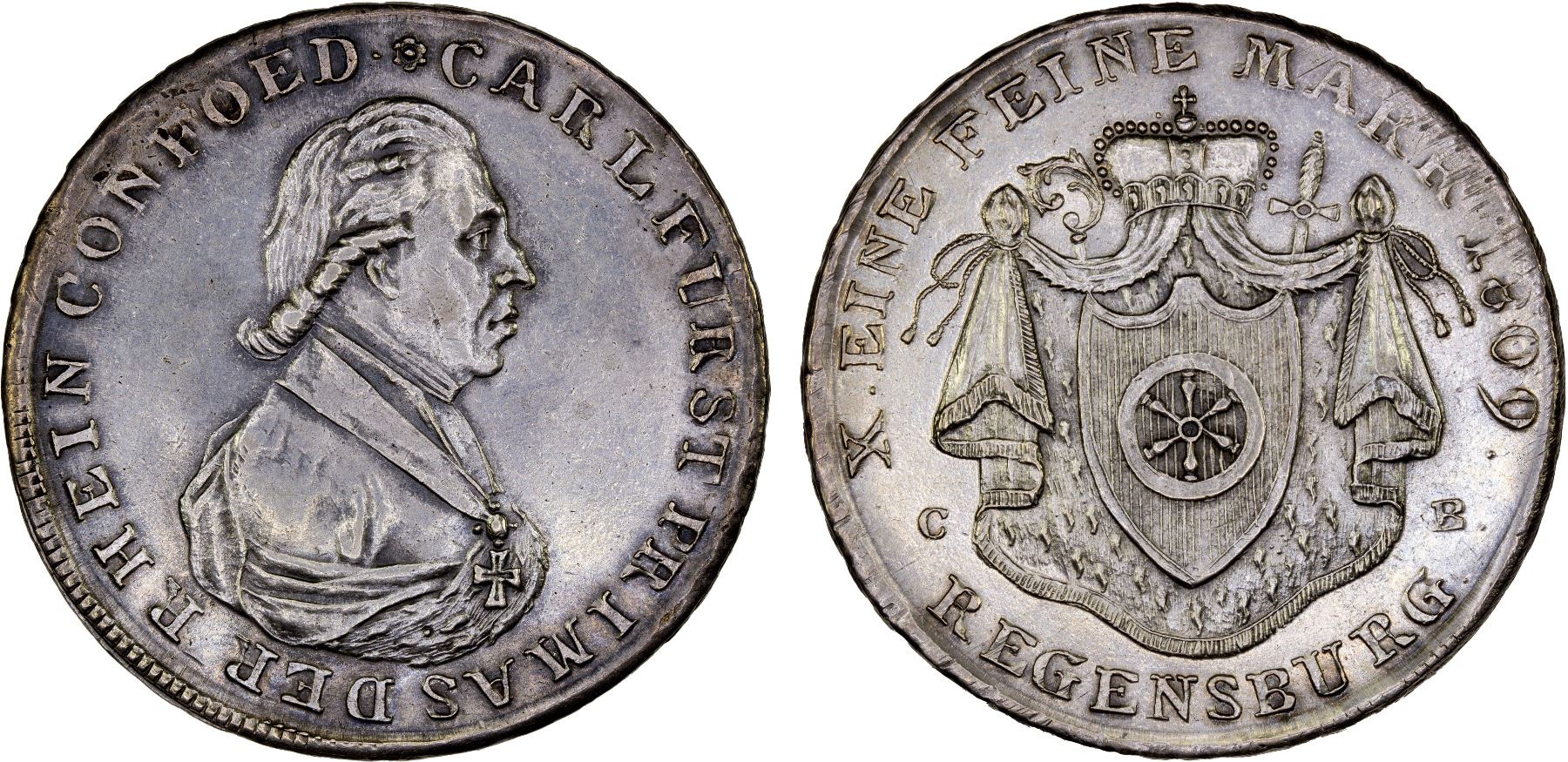 RHENISH CONFEDERATION: Carl Theodor von Dalberg, 1804-1810, AR thaler, 1809, XF