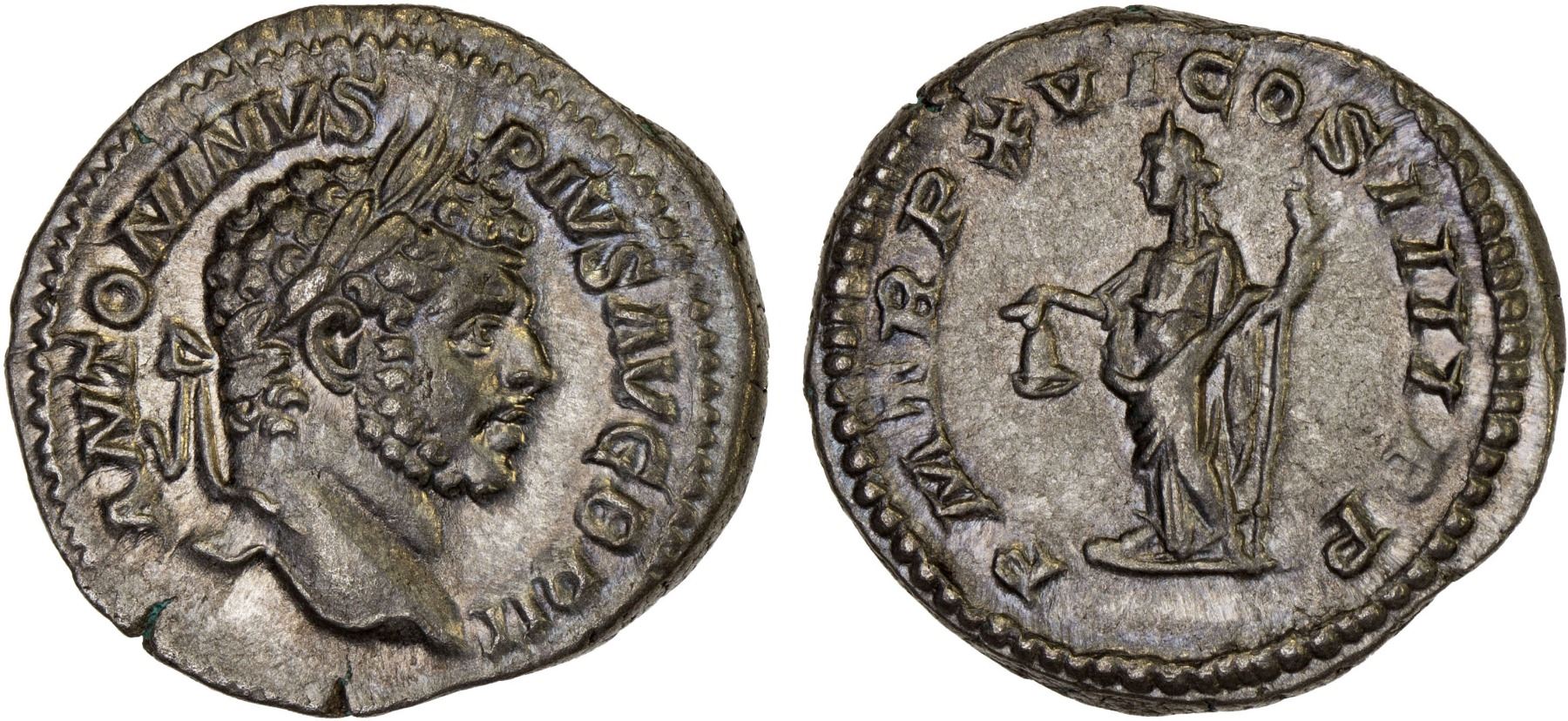 ROMAN EMPIRE: Caracalla, 198-217 AD, AR denarius (3.40g), Rome, 213 AD, XF