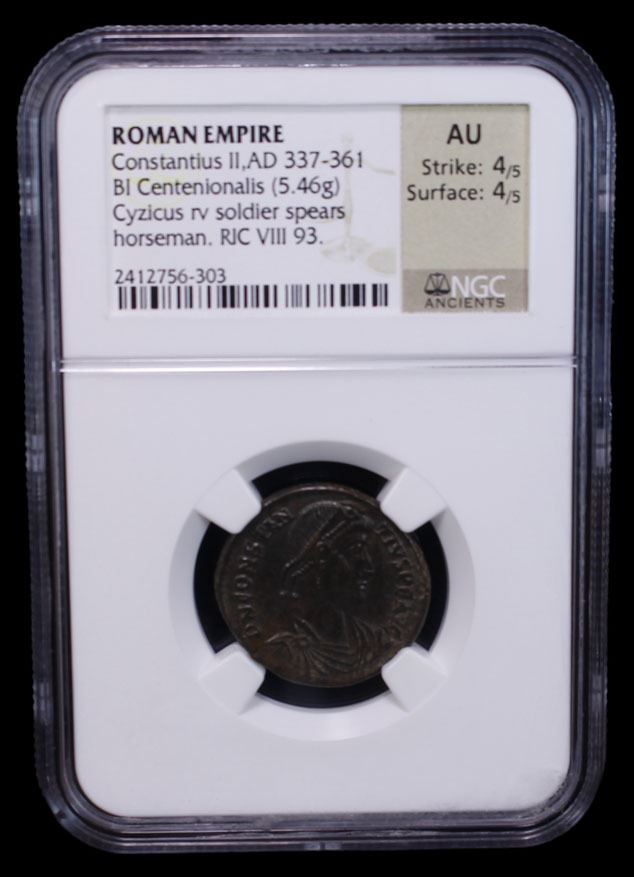 ROMAN EMPIRE: Constantius II, 337-361 AD, BI centenionalis (5.46g), Cyzicus, 351-354 AD, NGC AU