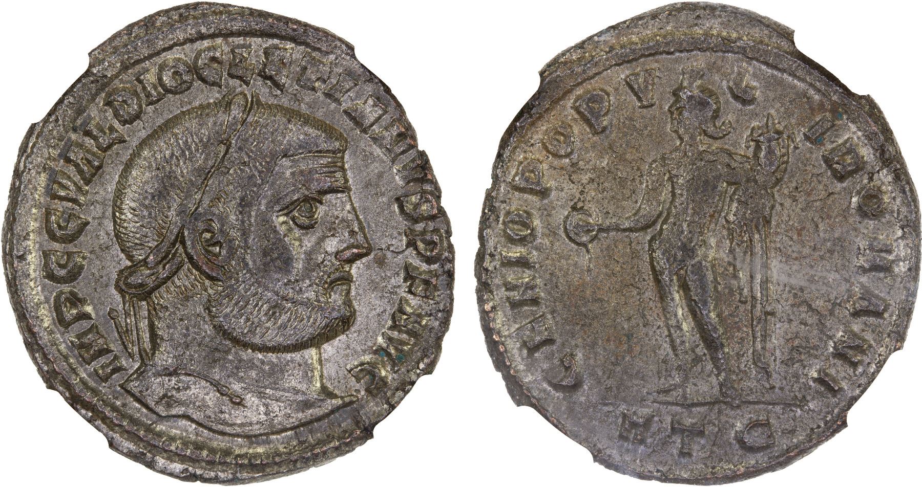 ROMAN EMPIRE: Diocletian, 284-305 AD, silvered BI nummus (9.23g), Heraclea, NGC XF