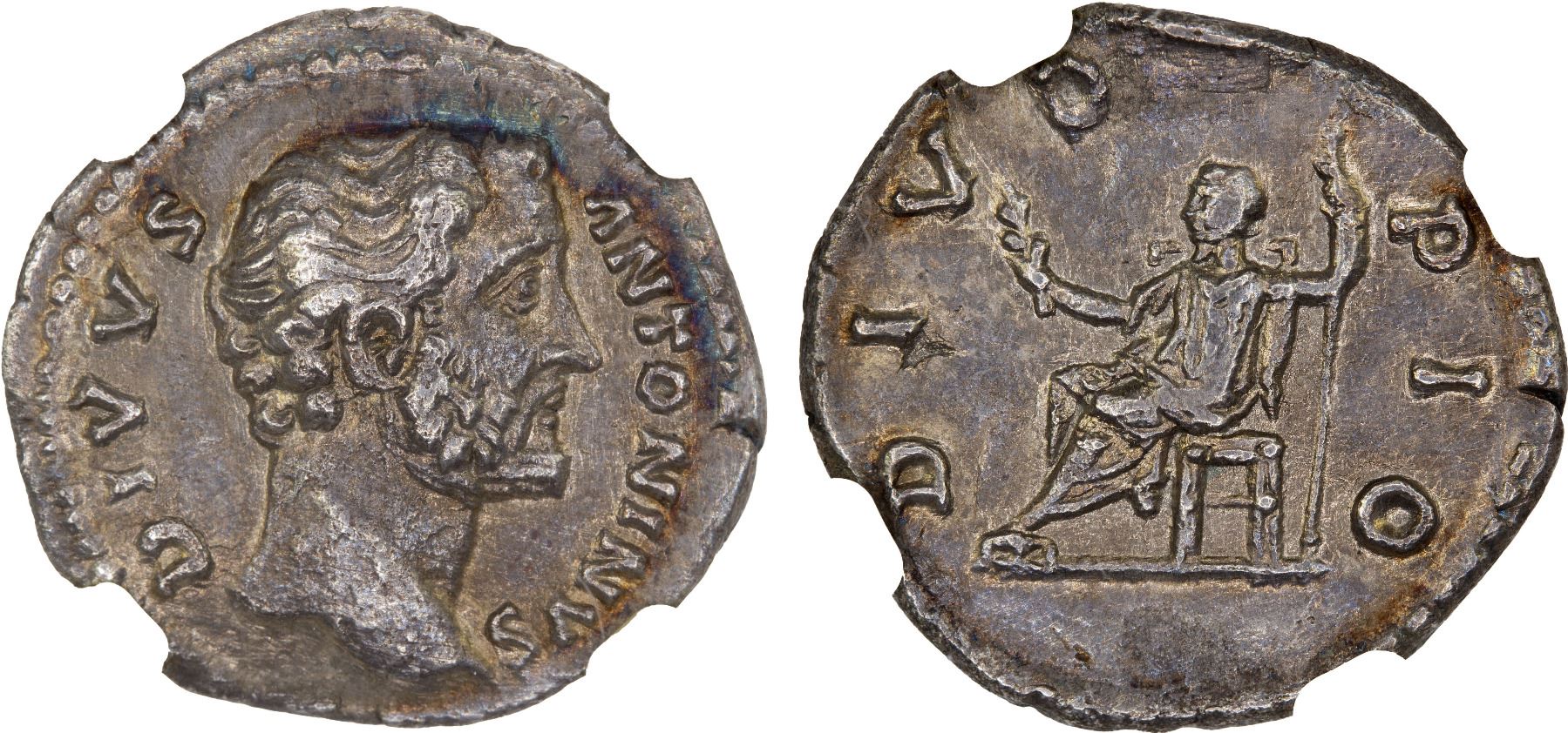 ROMAN EMPIRE: Divus Antoninus Pius, died 161 AD, AR denarius (2.84g), Rome, NGC Choice XF