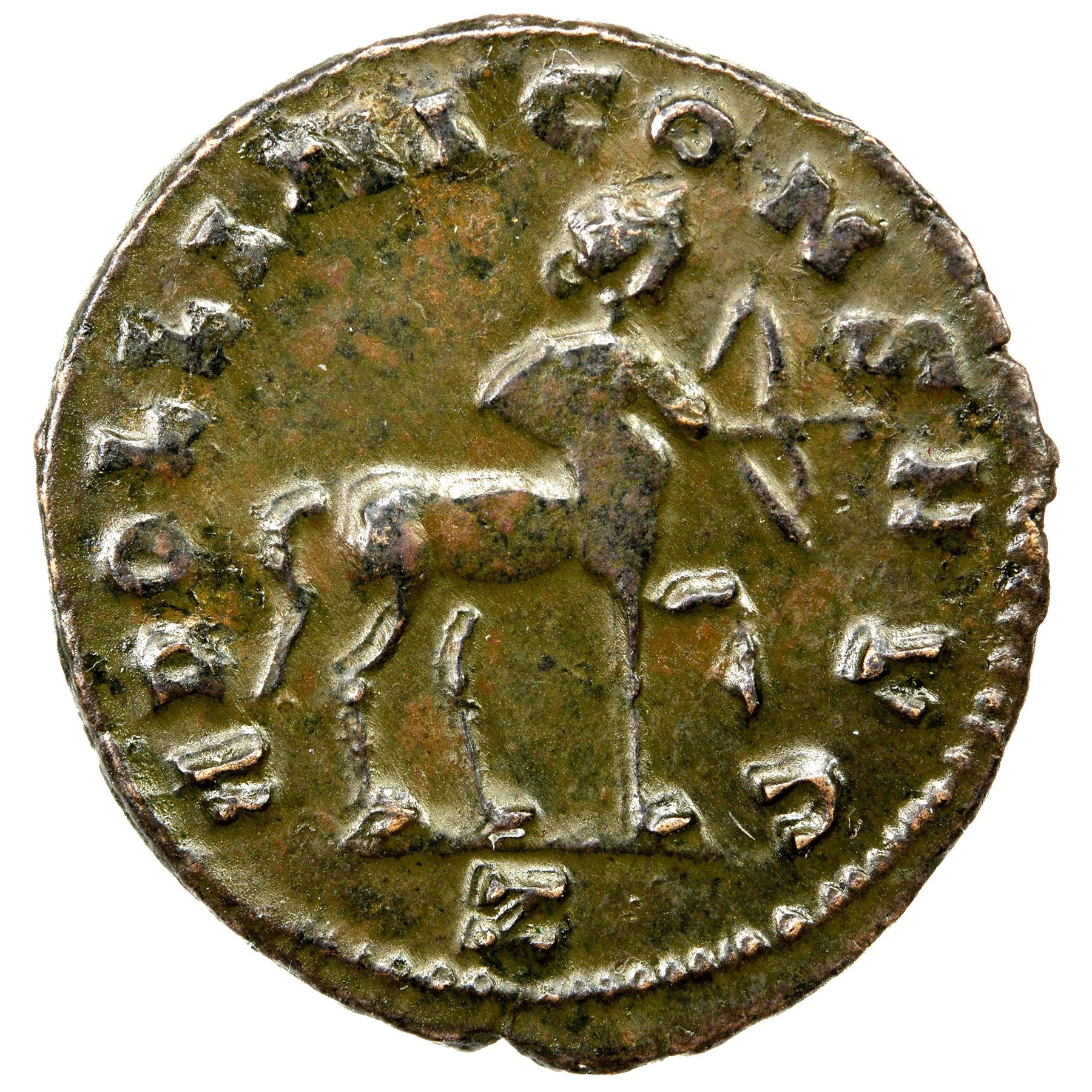 ROMAN EMPIRE: Gallienus, 253-268, AE antoninianus (2.61g), Rome, 260-268, RIC-163, radiate bust right, GALLIENVS AVG // centaur walking right, drawing bow, APOLLINI CONS AVG, lovely glossy brown patina, choice VF to EF.