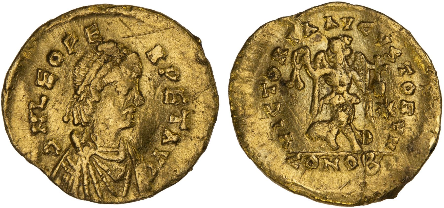ROMAN EMPIRE: Leo I, 457-474 AD, AV tremissis (1.49g), Constantinople, 471-473 AD, VF-XF