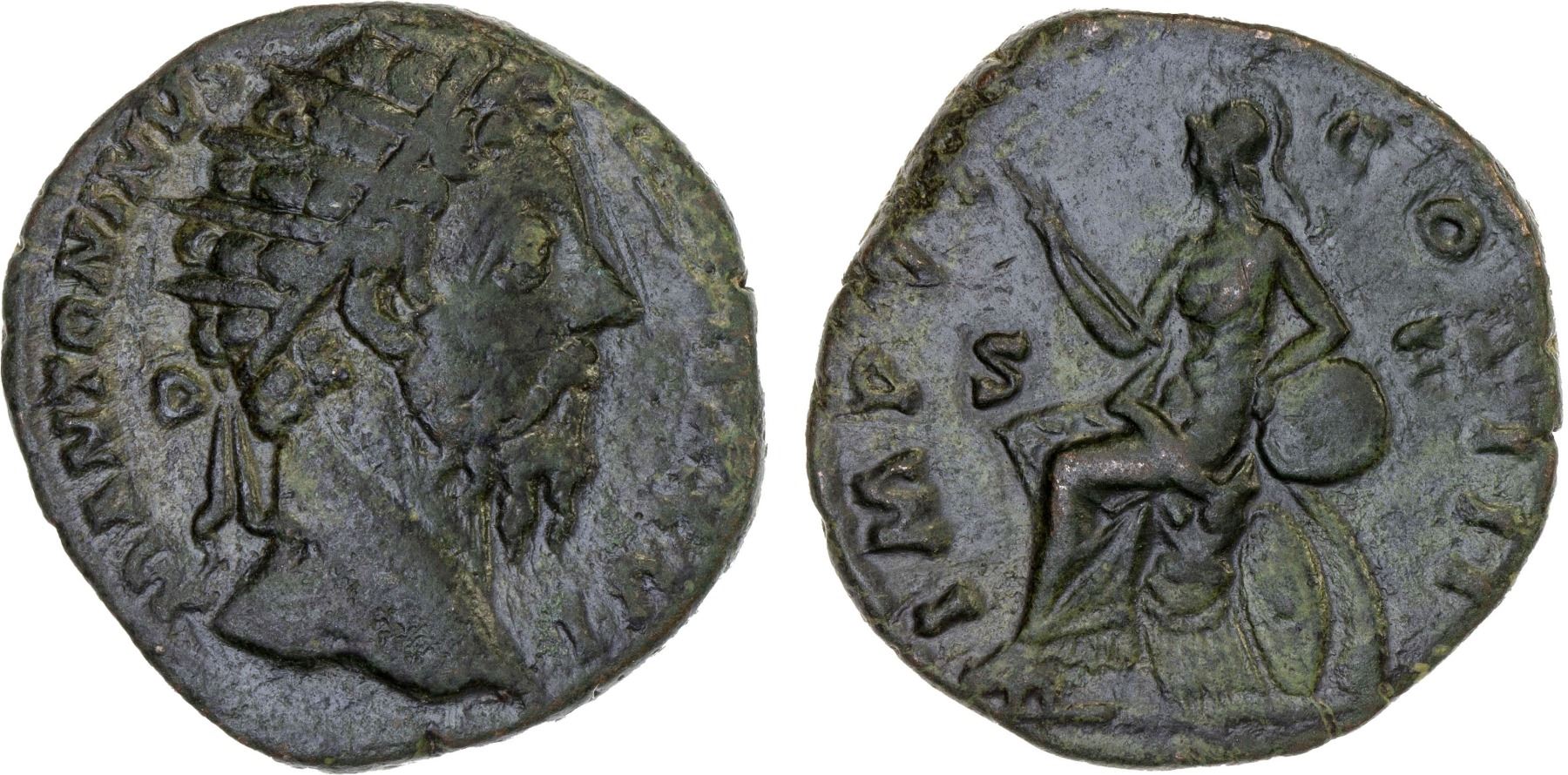 ROMAN EMPIRE: Marcus Aurelius, 161-180 AD, AE dupondius (9.7g), Rome, 171-172 AD, VF
