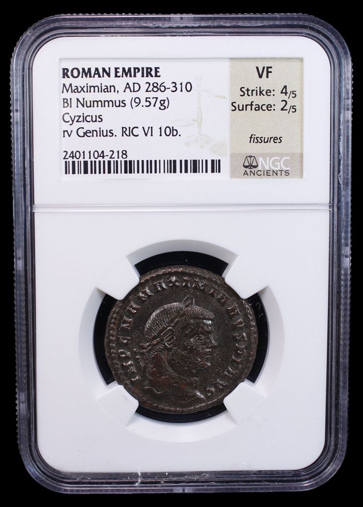 ROMAN EMPIRE: Maximian, 286-310 AD, BI nummus (9.57g), Cyzicus, NGC VF