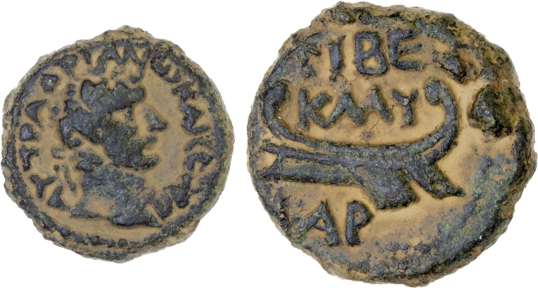 ROMAN PROVINCIAL, JUDAEA: Hadrian, 117-138 AD, AE14 (3.03g), year 101 (118 AD), RPC-3935, Kindler-10, laureate head right // galley left, TIBE / KΛAY above, date L AP below, a lovely example with bold details and desert patina, Choice VF