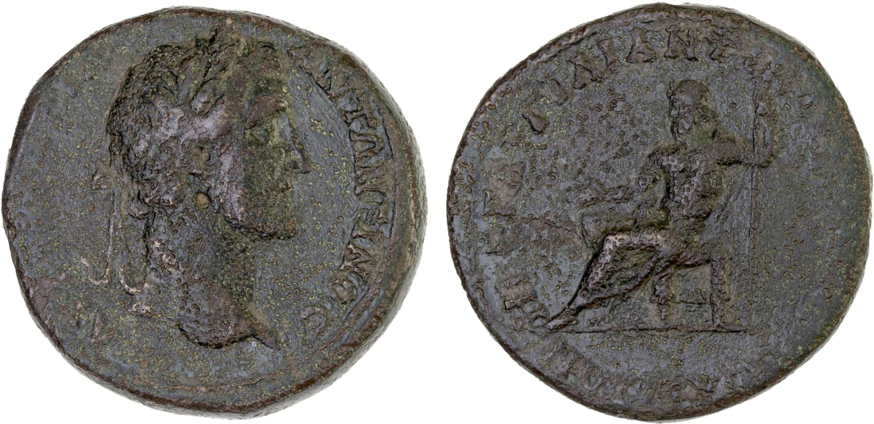 ROMAN PROVINCIAL, THRACE: Pautalia, Antoninus Pius, 138-161, AE30 (20.98g), Tachev--, Varbanov--, Ruzicka--, citing Lucius Pullaienus Gargilius Antiquus as legatus Augusti pro praetore Thraciae (160-161), laureate head right // Zeus seated left, holding thunderbolt and scepter, unpublished type for this ruler, some porosity, accompanied by collector's envelope, VF, ex Thomas R. Miller Collection.