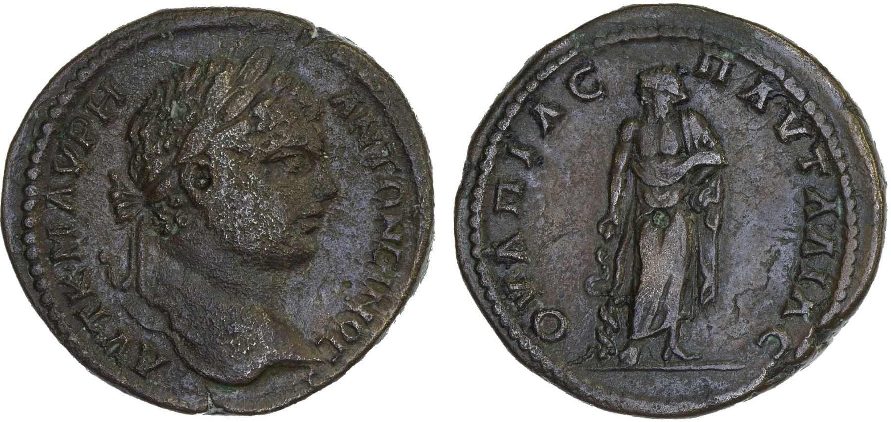 ROMAN PROVINCIAL, THRACE: Pautalia, Caracalla, 198-217, AE30 (18.86g), Tachev-154, Varbanov-4998, laureate head right // Asklepios standing facing with head left, holding staff with coiled serpent, light porosity on obverse, light brown patina, accompanied by collector's envelope, Choice VF, ex Thomas R. Miller Collection.