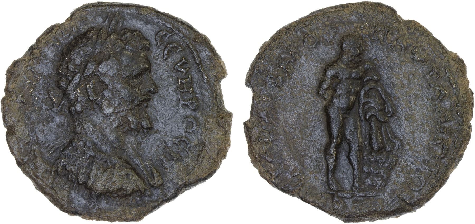 ROMAN PROVINCIAL, THRACE: Pautalia, Septimius Severus, 193-211, AE32 (15.08g), Tachev-145var, Varbanov-4616var, citing Quintus Sicinnius Clarus as legatus Augusti pro praetore Thraciae (201-204), laureate, draped, and cuirassed bust right // Herakles standing right, holding lion skin and club over pile of rocks, some corrosion, smoothing, accompanied by collector's envelope, F-VF, ex Thomas R. Miller Collection.