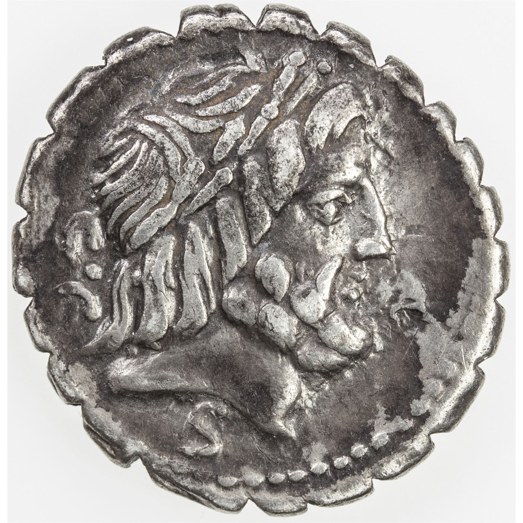 ROMAN REPUBLIC: Q. Antonius Balbus, AR serrate denarius (3.79g), Rome, Crawford-364/1b; Sydenham-742, struck 83-82 BC, laureate head of Jupiter right, S.C behind, S below // Victory driving quadriga right, holding wreath and palm frond, Q ANTO BALB / PR in exergue, toned, VF.