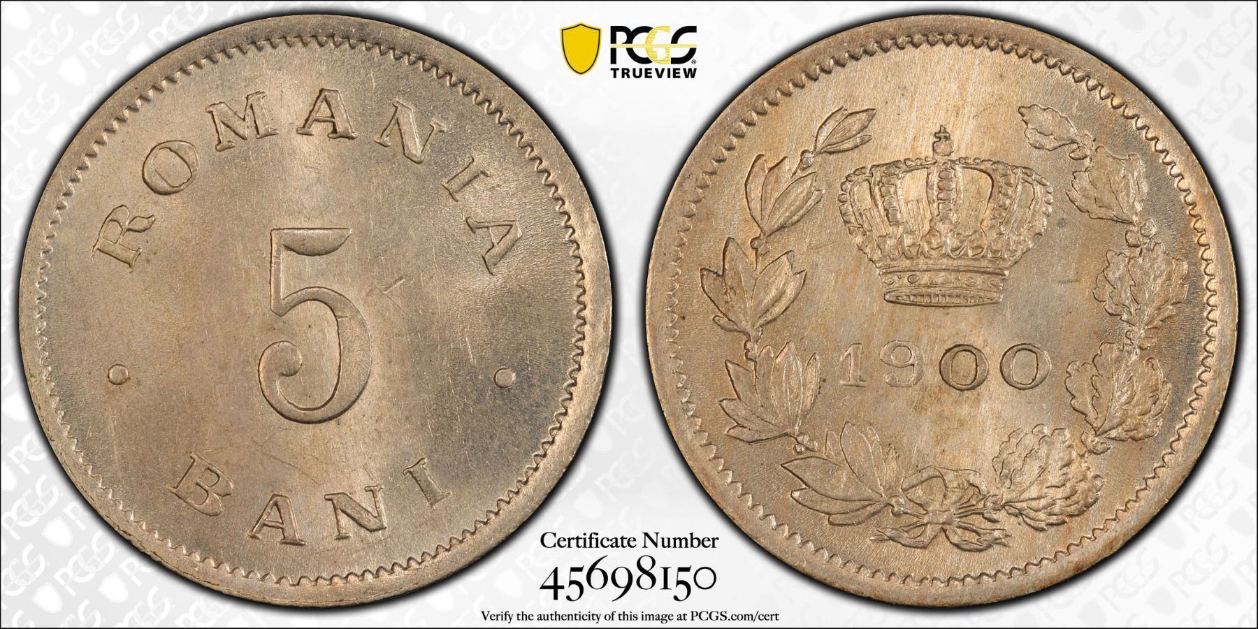 ROMANIA: Carol I, 1881-1914, 5 bani, 1900, KM-28, a wonderful lustrous example! PCGS graded MS64.