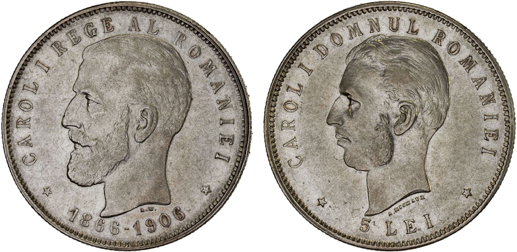 ROMANIA: Carol I, King, 1881-1914, AR 5 lei, 1906, XF