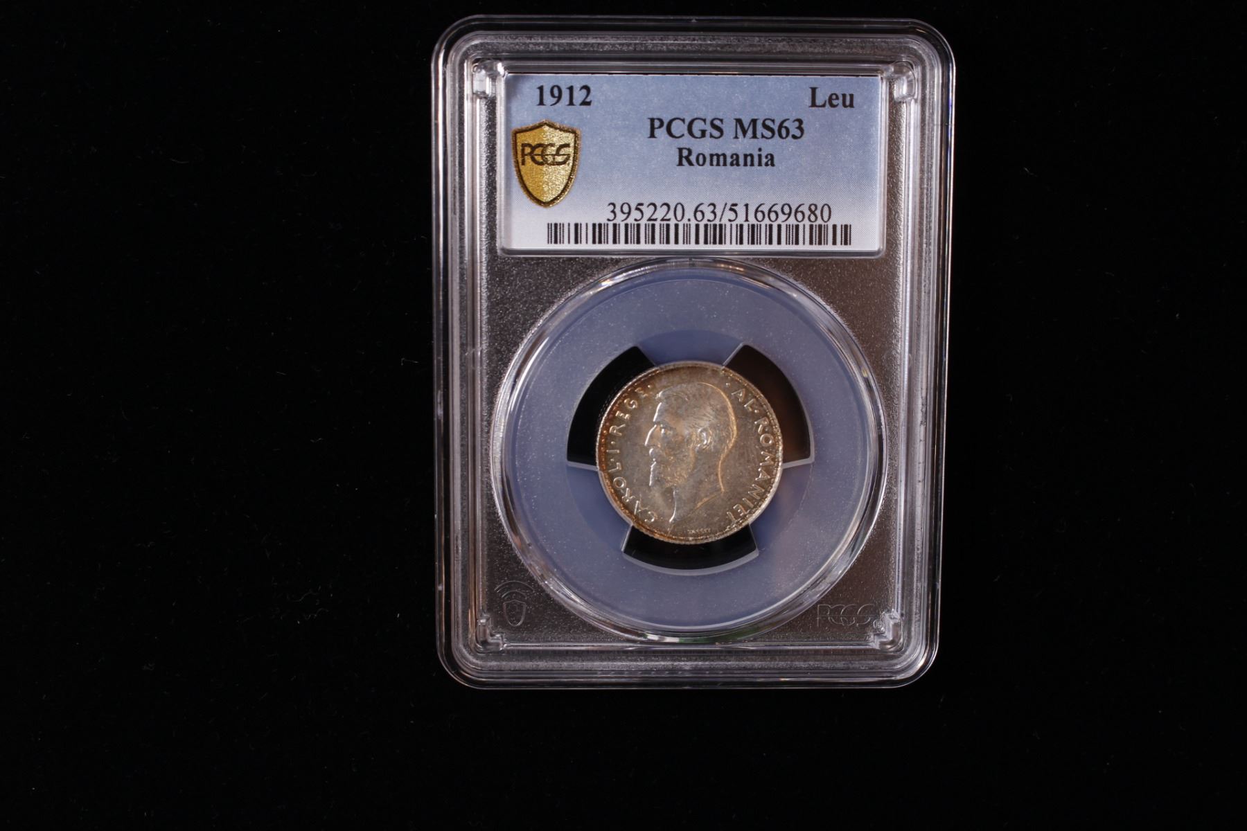 ROMANIA: Carol I, King, 1881-1914, AR leu, 1912, PCGS MS63