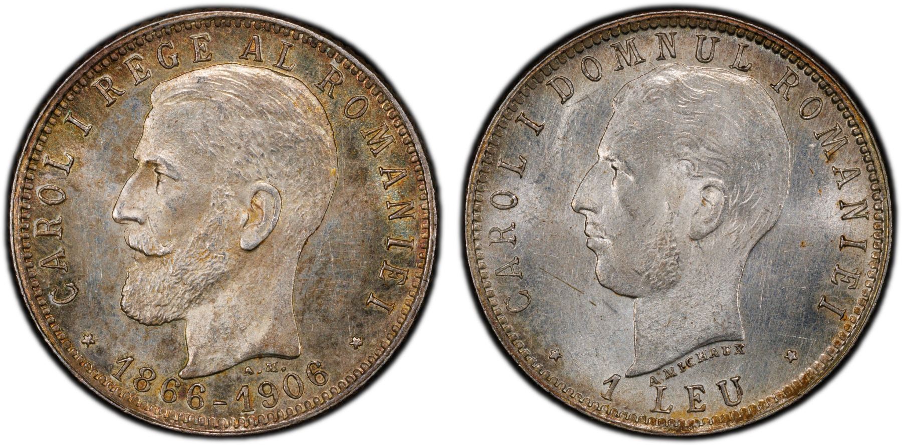 ROMANIA: Carol I, King, 1894-1914, AR leu, 1906, PCGS MS63