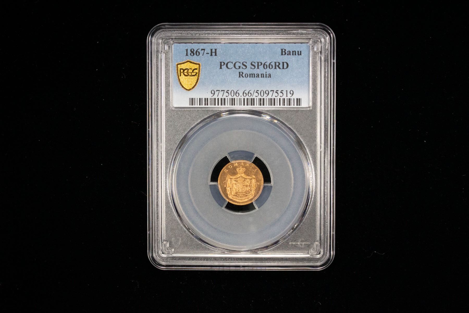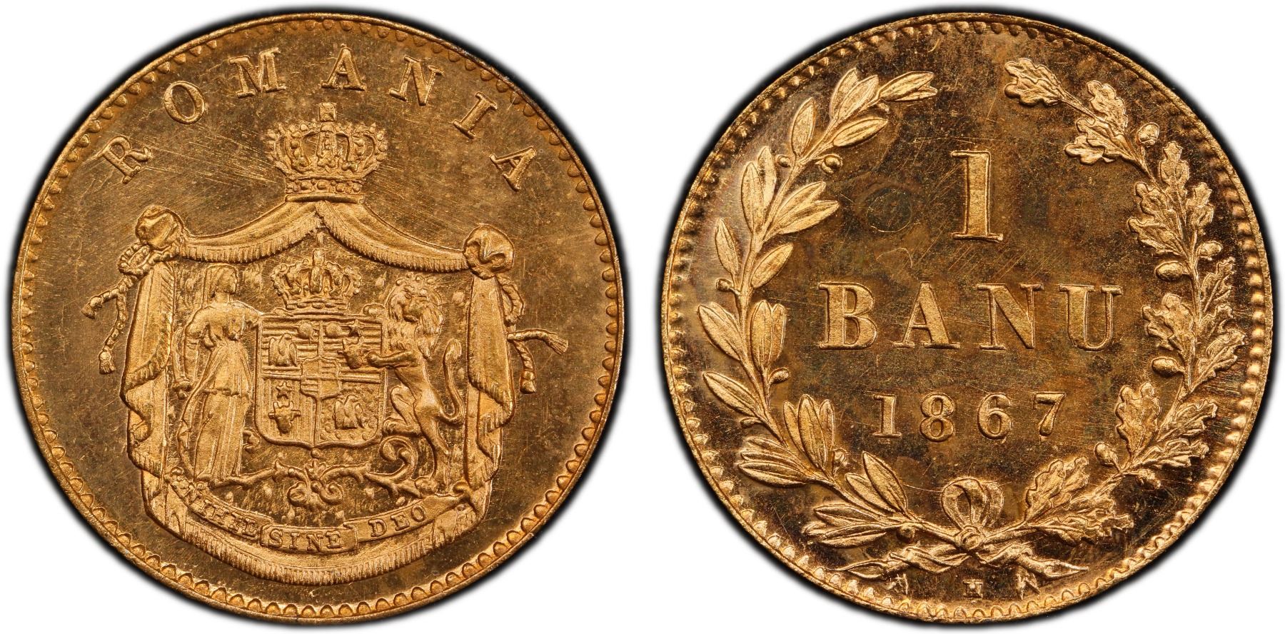 ROMANIA: Carol I, Prince, 1866-1881, AE banu, 1867-H, KM-1, Heaton Mint specimen strike, a fantastic red lustrous example, PCGS graded Specimen 66 RD, ex Almer H. Orr III Collection.