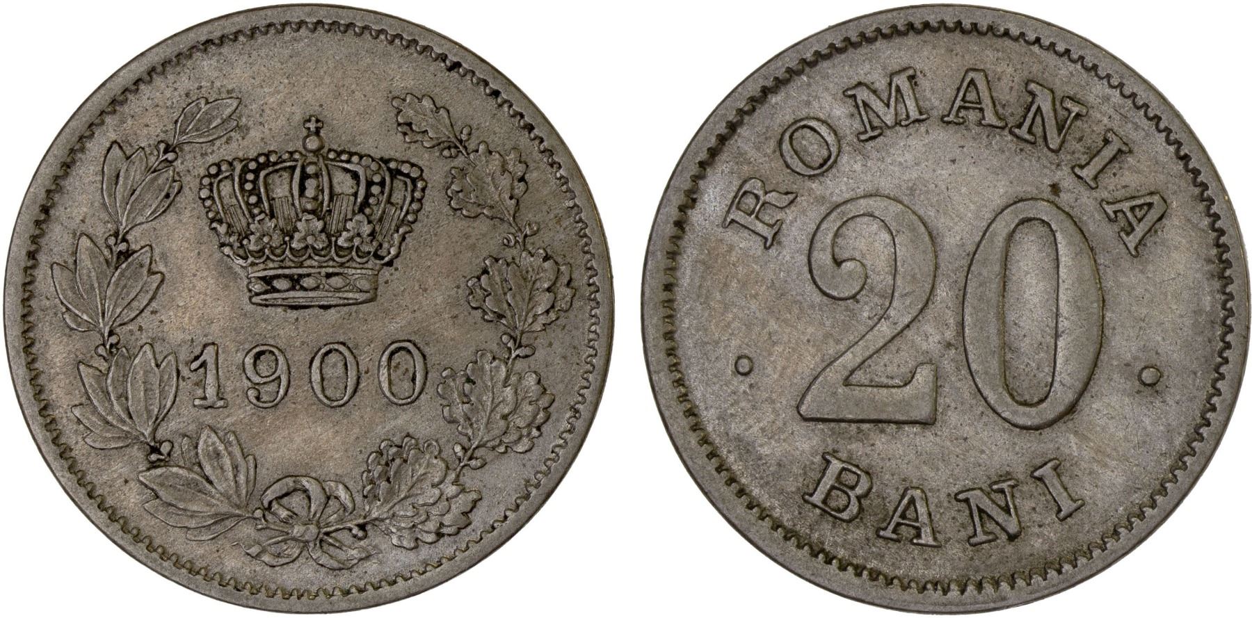 ROMANIA: Carol I, as King, 1881-1914, 20 bani, 1900, VF-XF