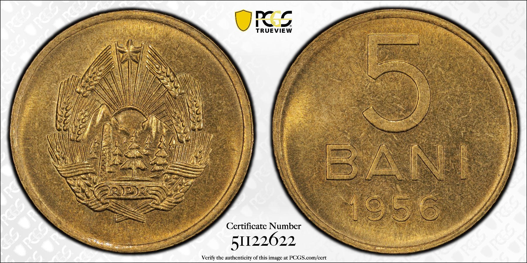 ROMANIA: People's Republic, 5 bani, 1956, KM-83.2, a fantastic mint state example! PCGS graded MS66.