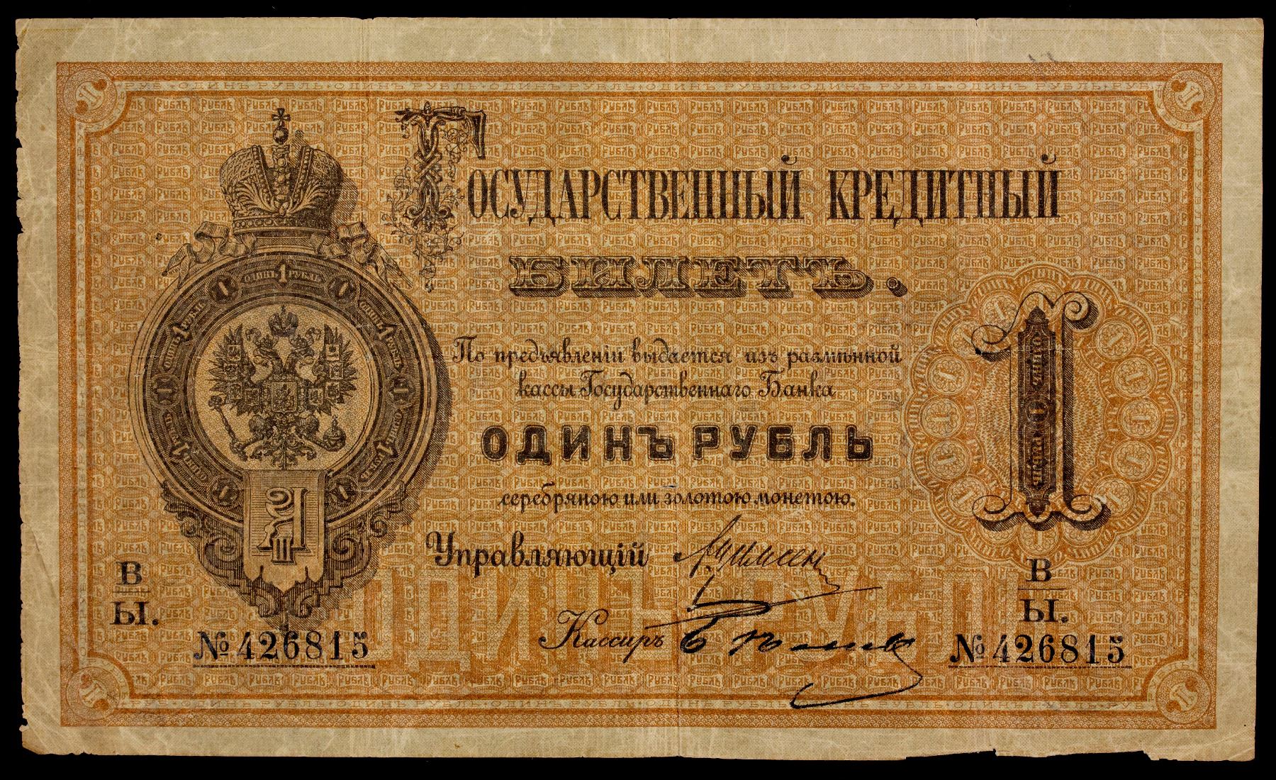 RUSSIA: Alexander III, 1881-1894, 1 ruble, 1884, Pick-A48, a small piece missing from the margin in the lower right corner, Good.