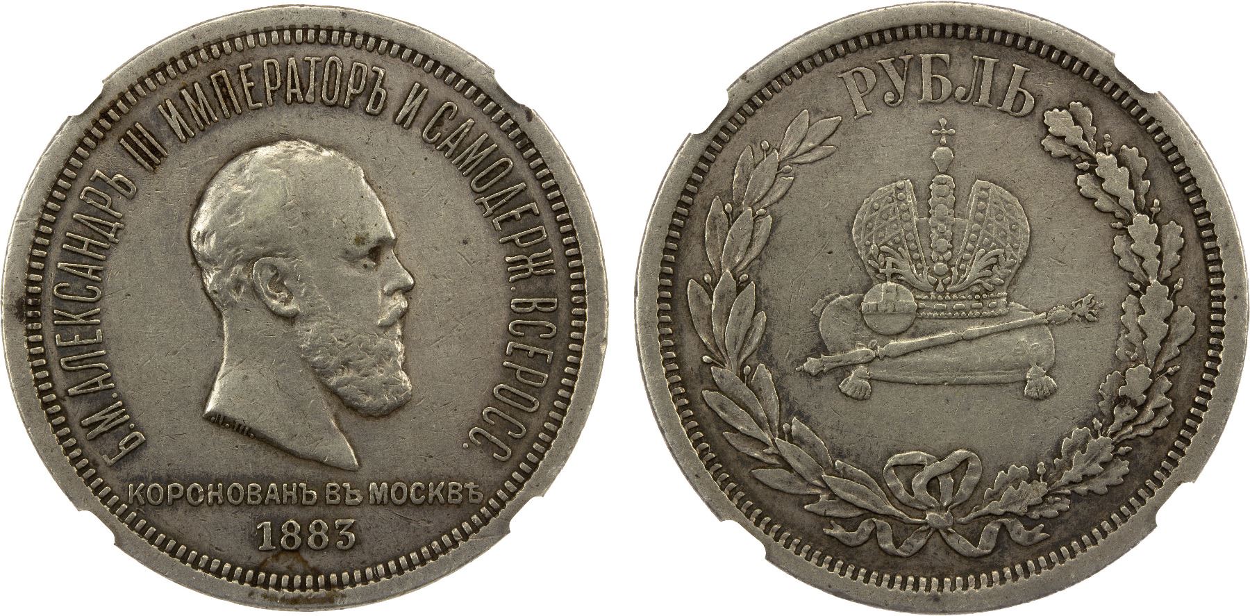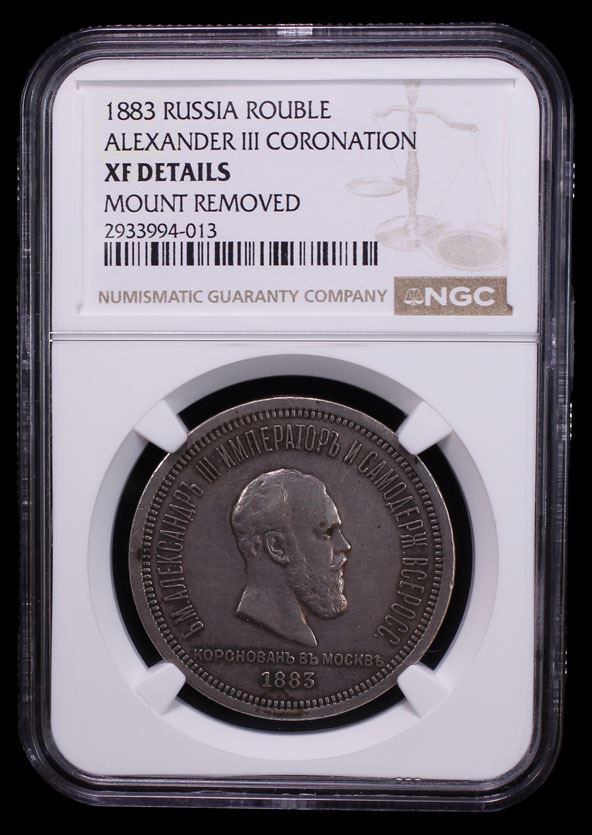 RUSSIA: Alexander III, 1881-1894, AR rouble, 1883, Y-43, Alexander III Coronation, mount once removed from the top edge, NGC graded XF details.