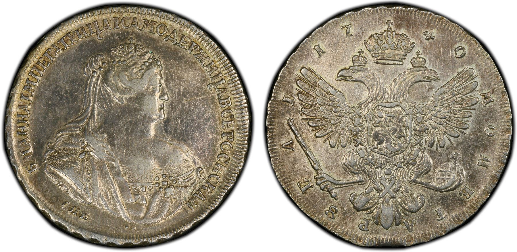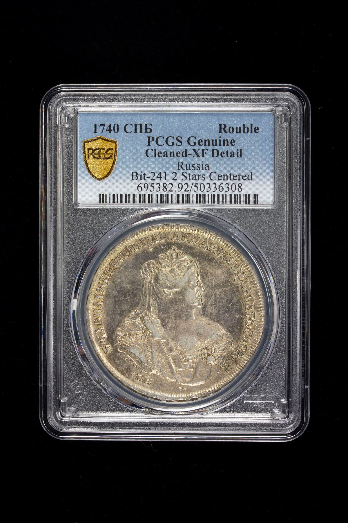RUSSIA: Anna Ioannovna, 1730-1740, AR rouble, 1740, KM-204, Bit-236, St. Petersburg Mint, cleaned, PCGS graded XF details, ex Dr. Robert A. Rosenfeld Collection.